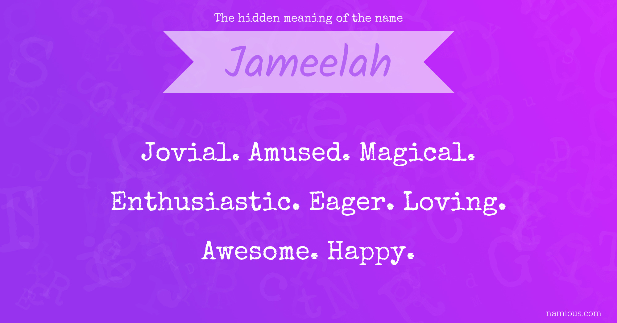 "Jameelah is a jovial, amused, magical, enthusiastic, eager, loving, awesome and happy person."