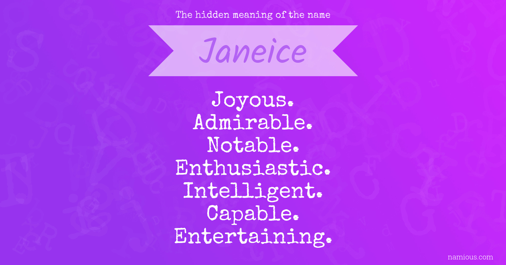 "Janeice is a joyous, admirable, notable, enthusiastic, intelligent, capable and entertaining person."