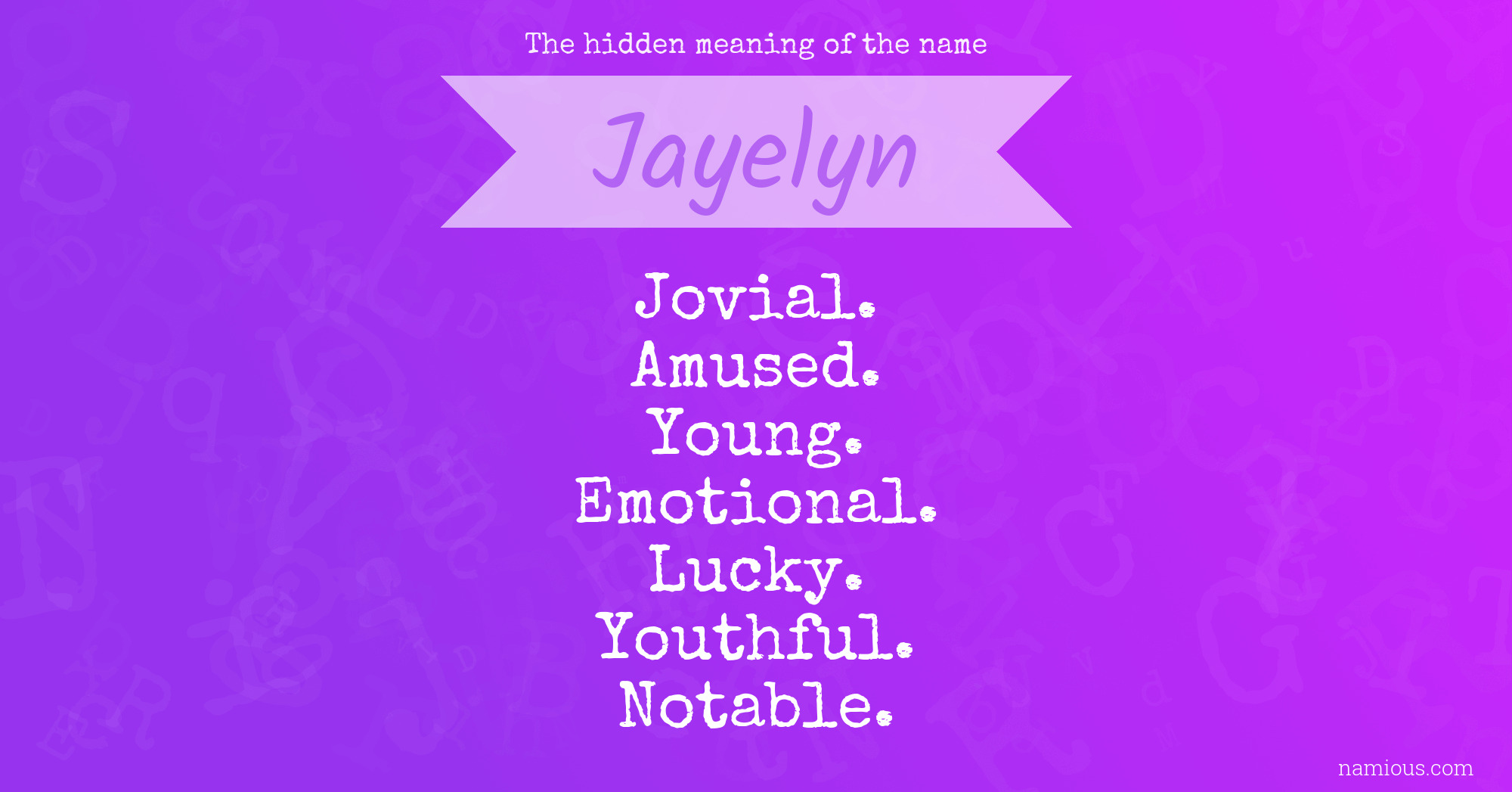 "Jayelyn is a jovial, amused, young, emotional, lucky, youthful and notable person."