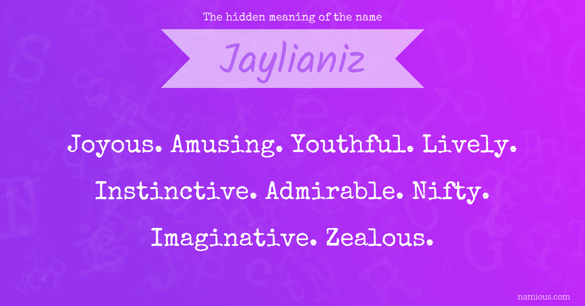 "Jaylianiz is a joyous, amusing, youthful, lively, instinctive, admirable, nifty, imaginative and zealous person."