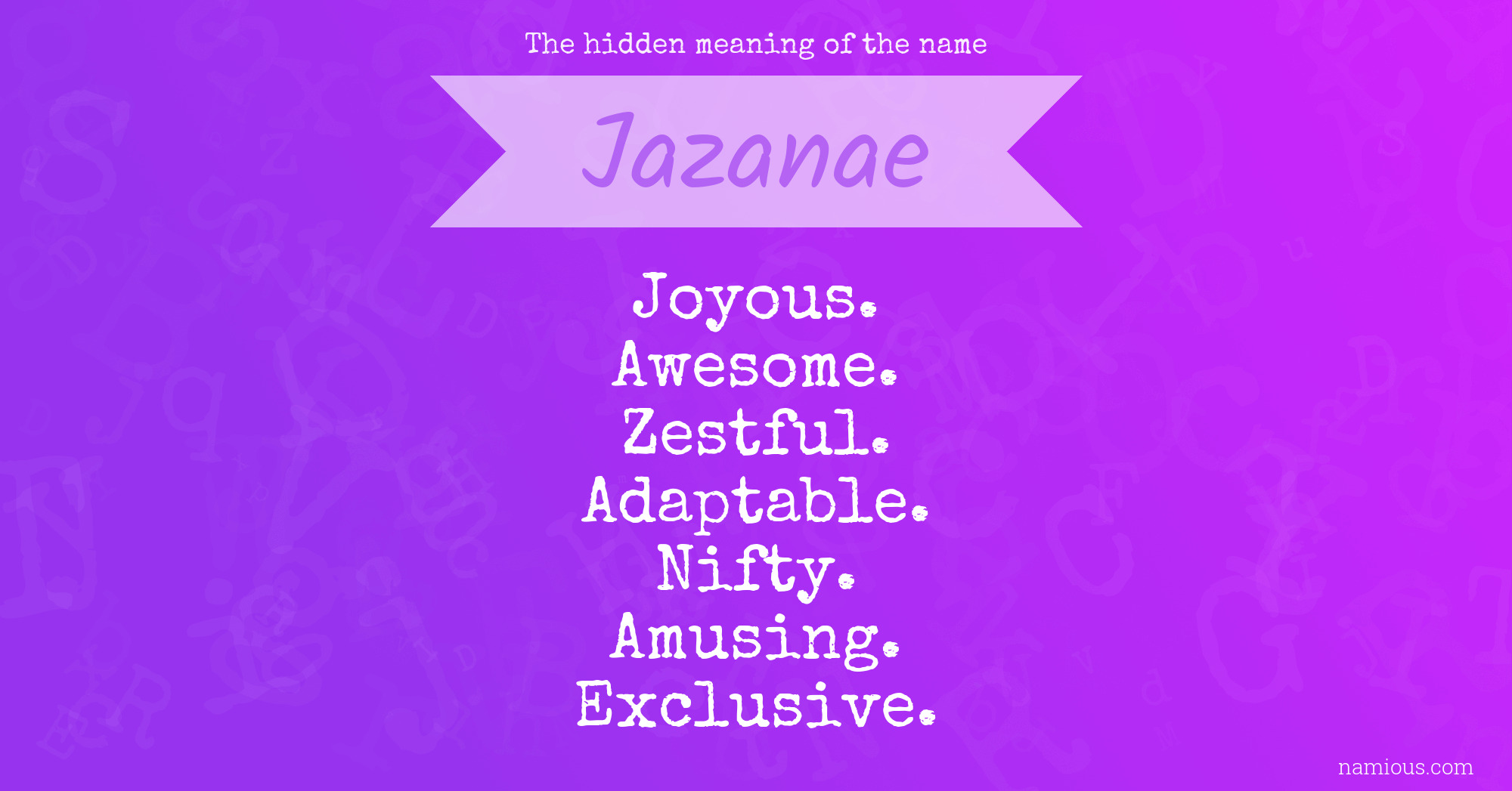 "Jazanae is a joyous, awesome, zestful, adaptable, nifty, amusing and exclusive person."