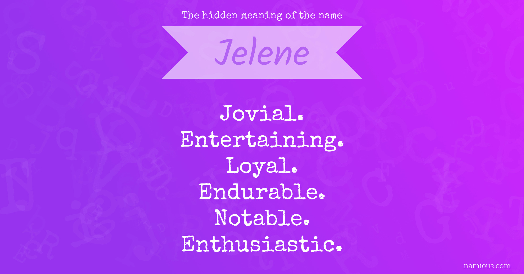 "Jelene is a jovial, entertaining, loyal, endurable, notable and enthusiastic person."