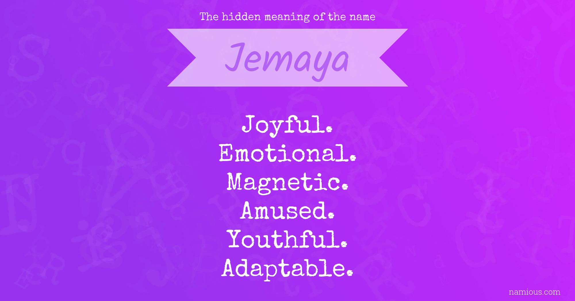 "Jemaya is a joyful, emotional, magnetic, amused, youthful and adaptable person."