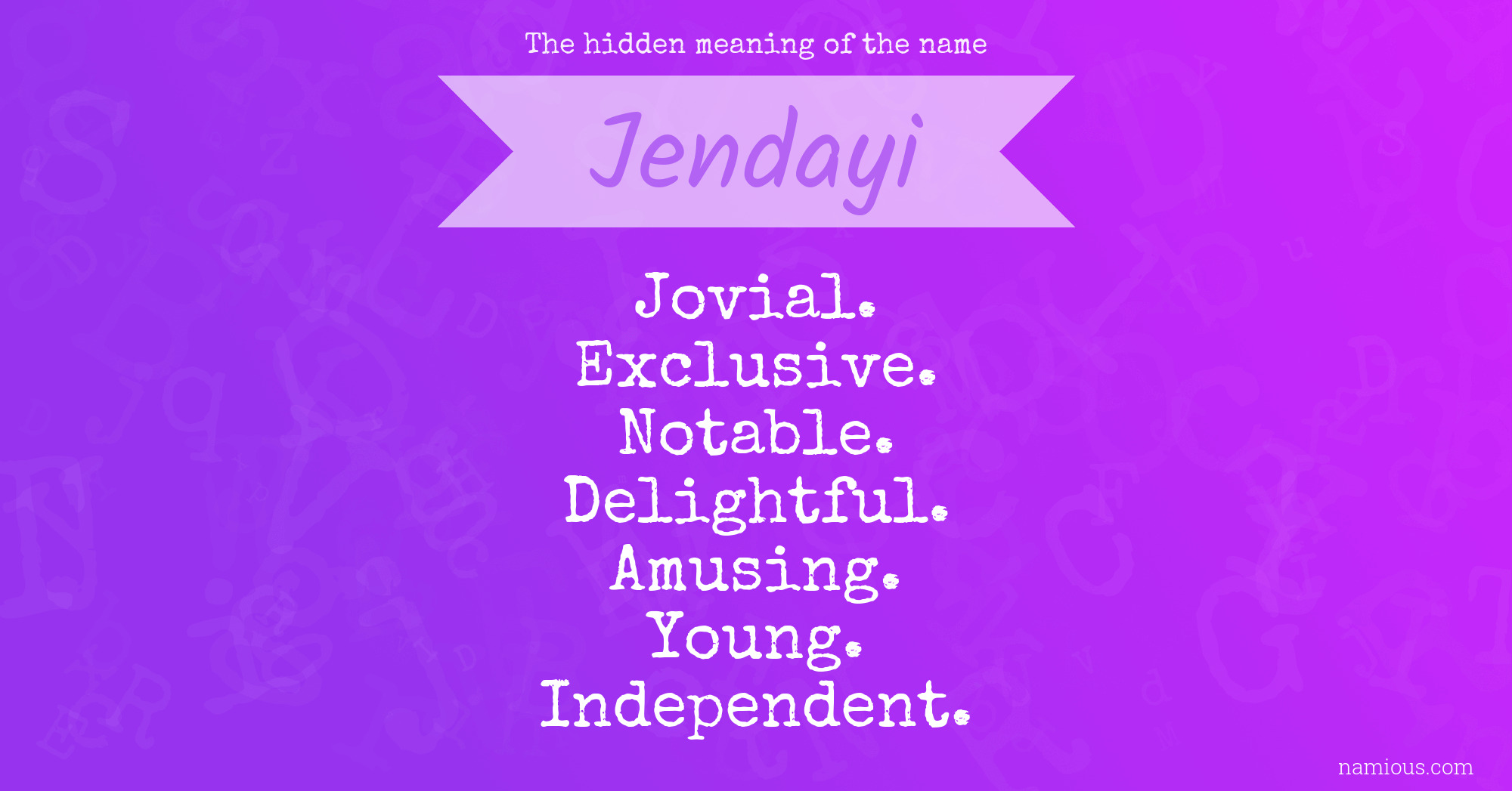 "Jendayi is a jovial, exclusive, notable, delightful, amusing, young and independent person."