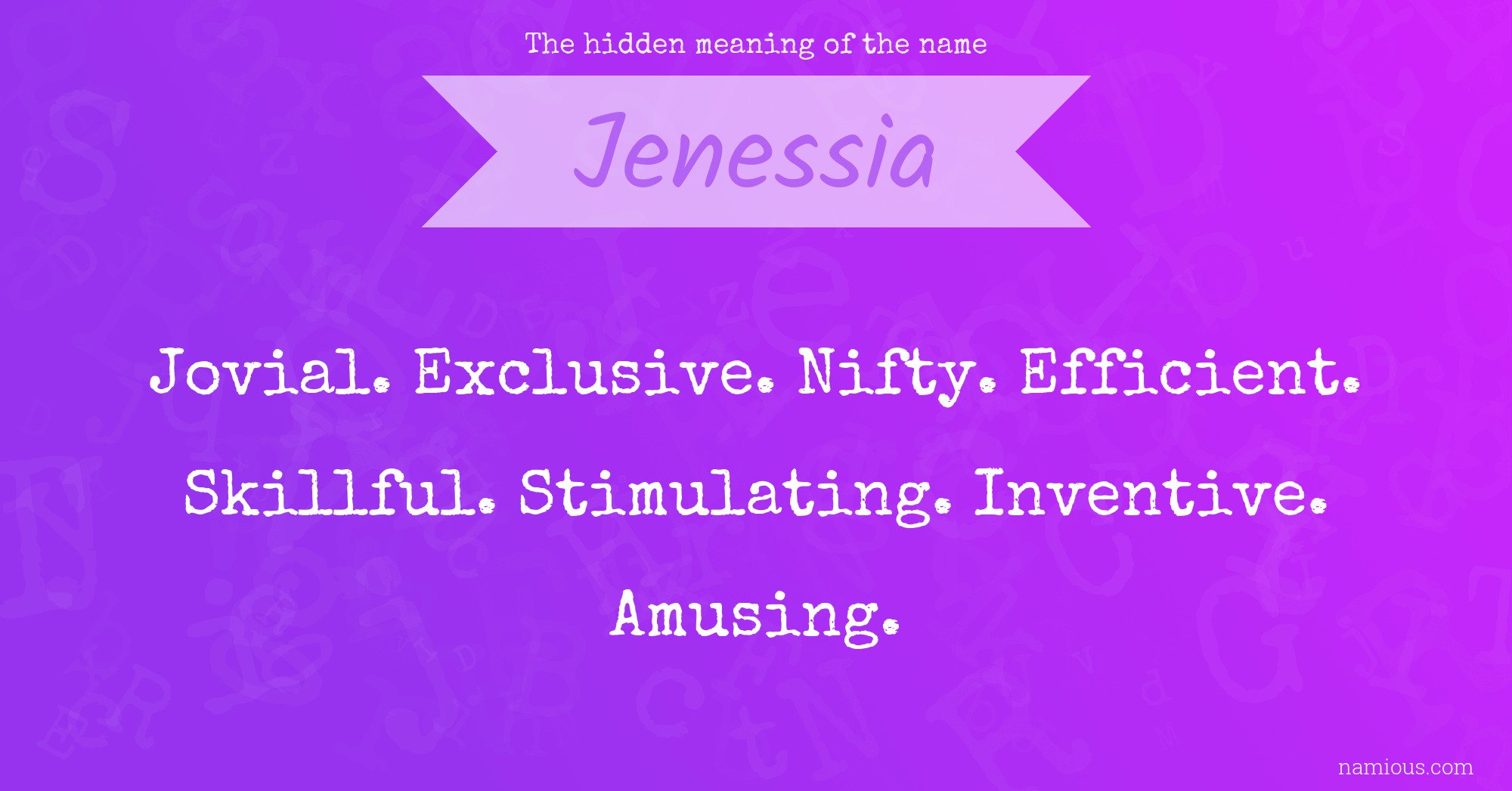 "Jenessia is a jovial, exclusive, nifty, efficient, skillful, stimulating, inventive and amusing person."