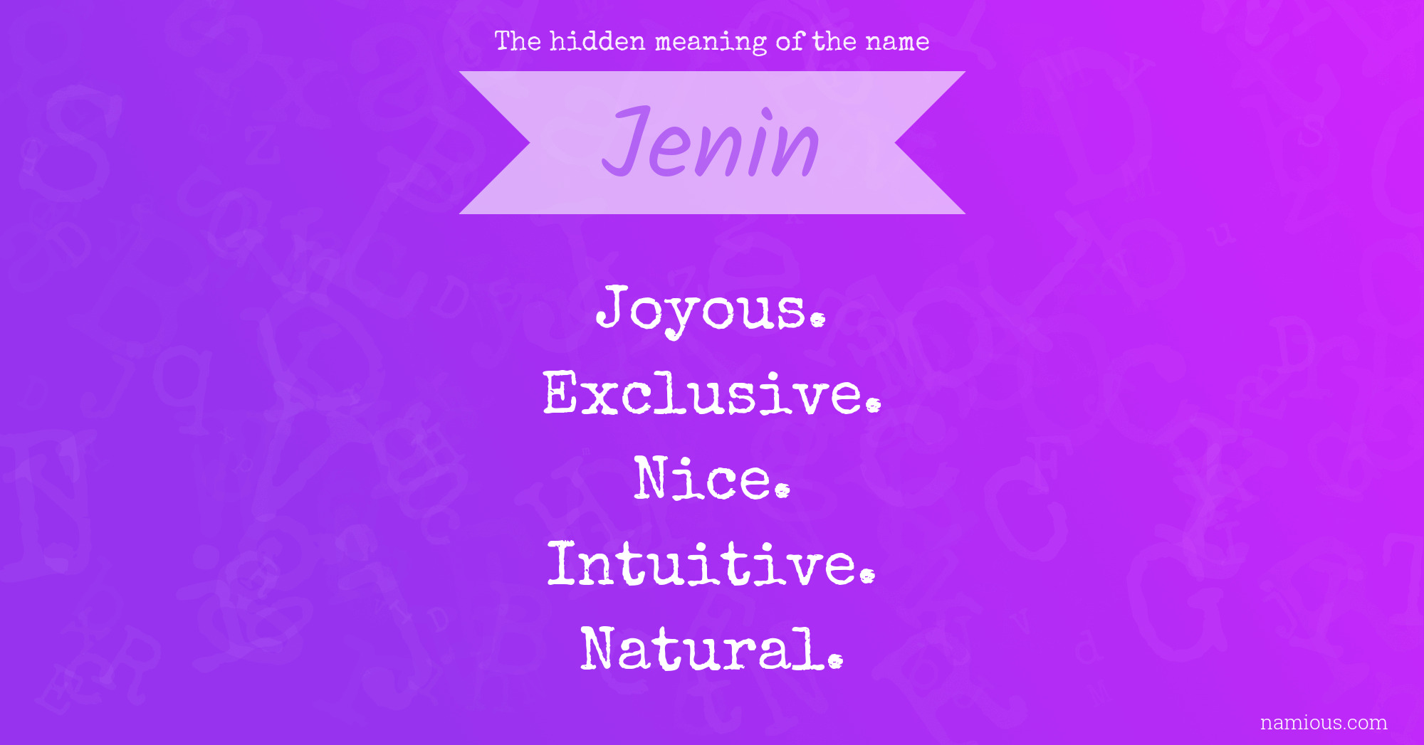 "Jenin is a joyous, exclusive, nice, intuitive and natural person."