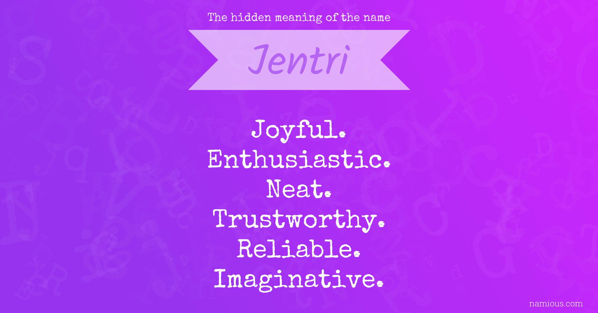 "Jentri is a joyful, enthusiastic, neat, trustworthy, reliable and imaginative person."