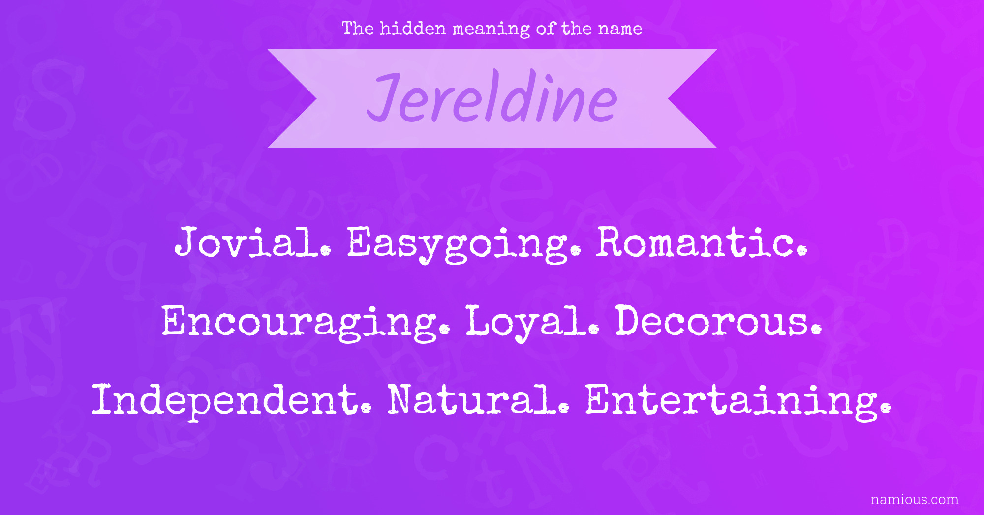 "Jereldine is a jovial, easygoing, romantic, encouraging, loyal, decorous, independent, natural and entertaining person."
