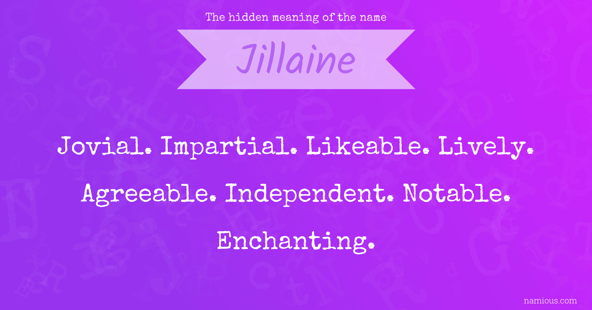 "Jillaine is a jovial, impartial, likeable, lively, agreeable, independent, notable and enchanting person."