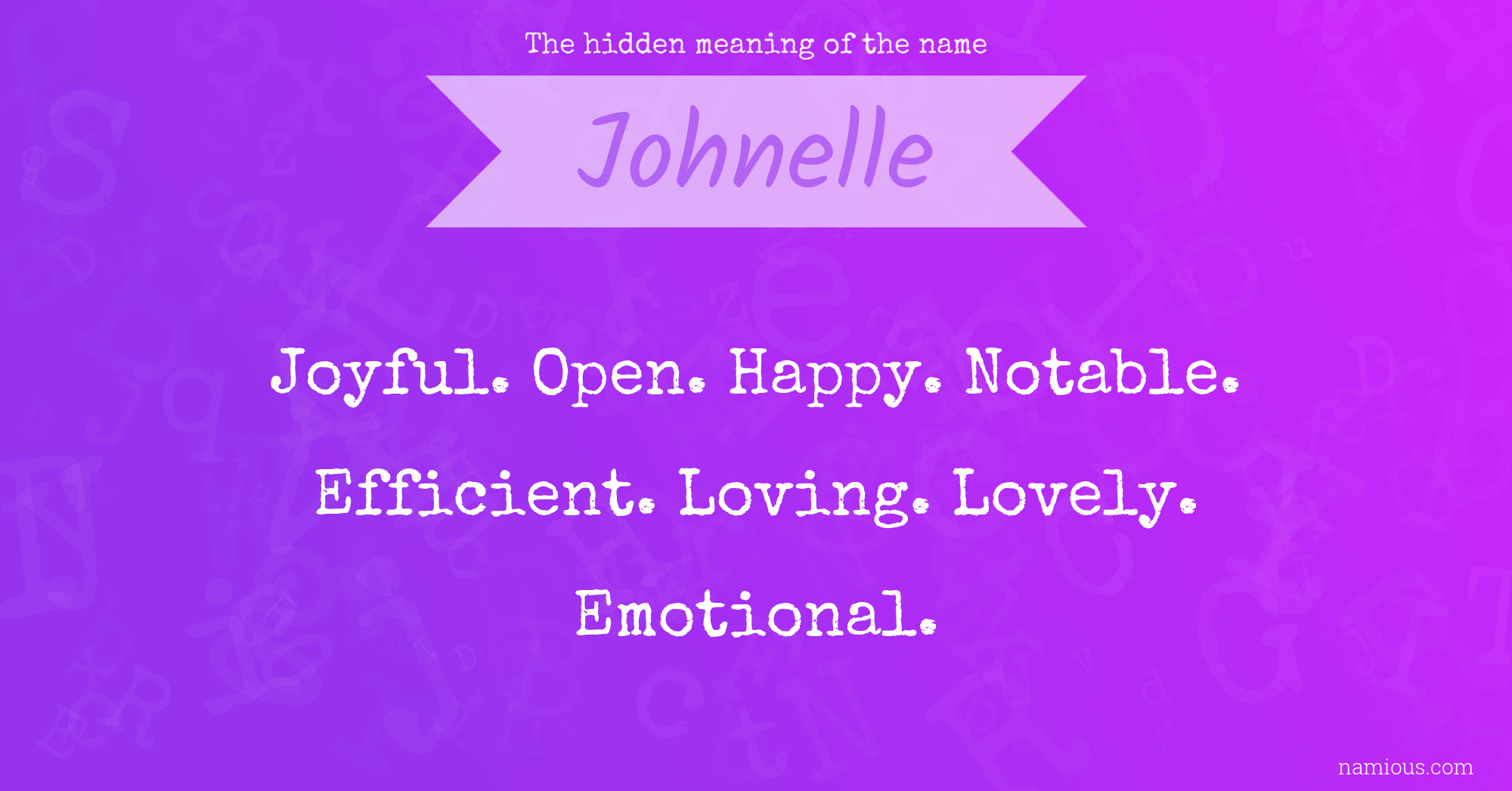 "Johnelle is a joyful, open, happy, notable, efficient, loving, lovely and emotional person."