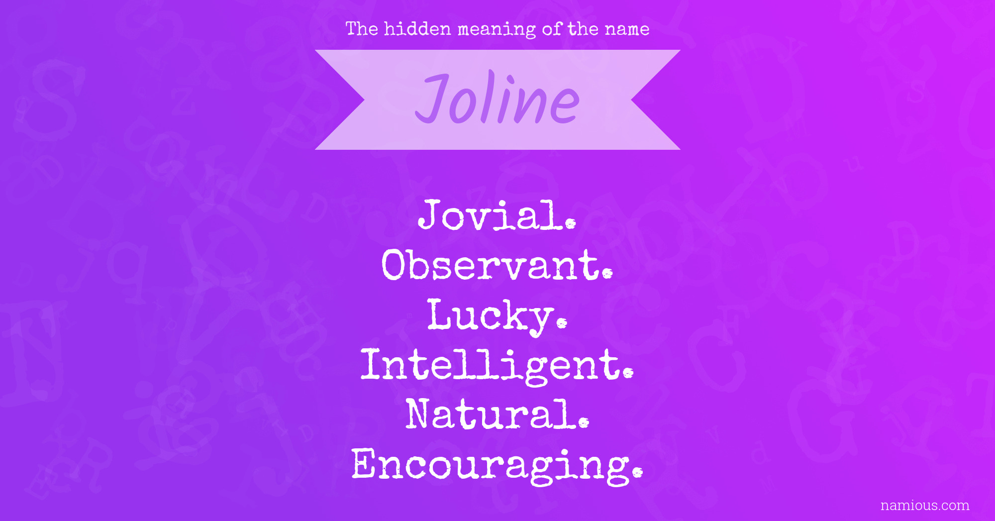 "Joline is a jovial, observant, lucky, intelligent, natural and encouraging person."