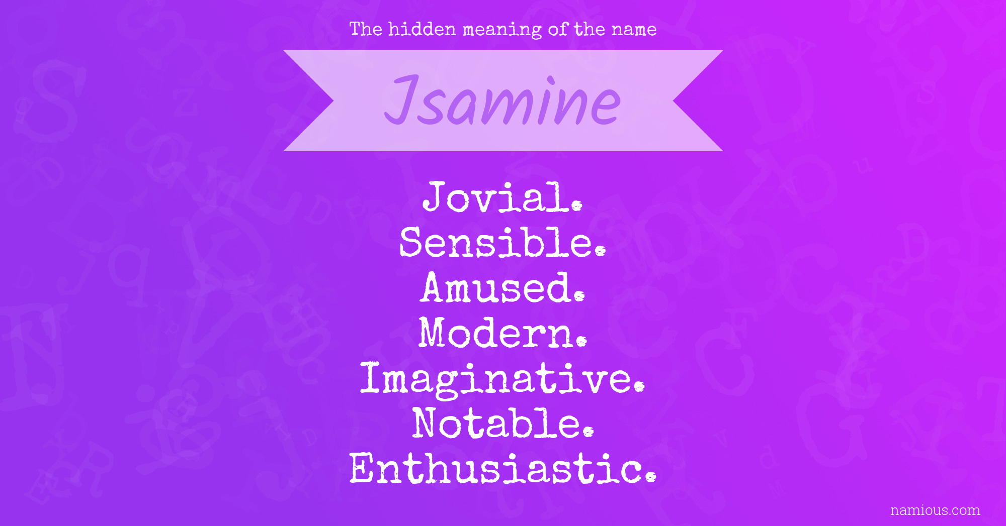 "Jsamine is a jovial, sensible, amused, modern, imaginative, notable and enthusiastic person."