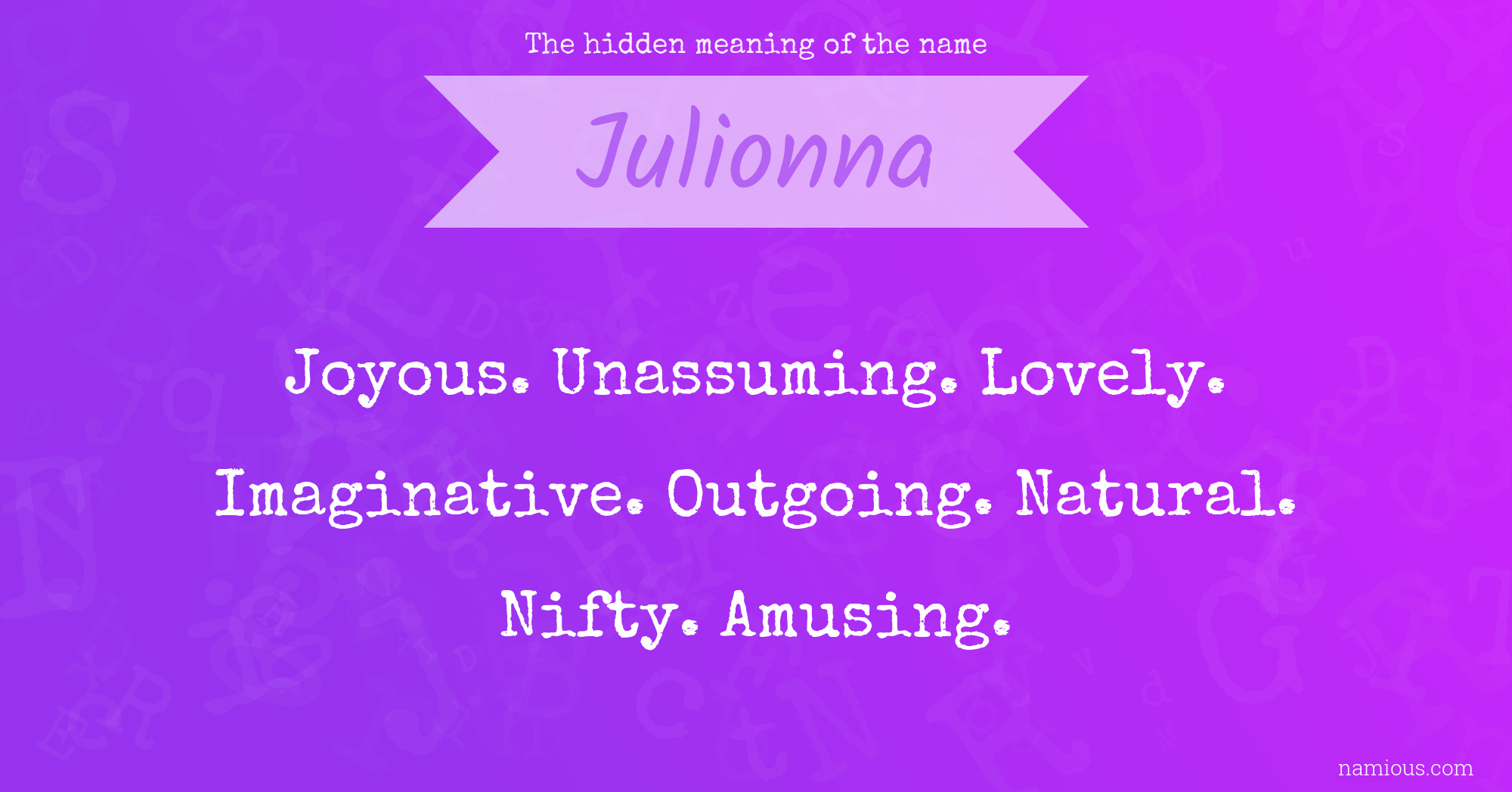"Julionna is a joyous, unassuming, lovely, imaginative, outgoing, natural, nifty and amusing person."
