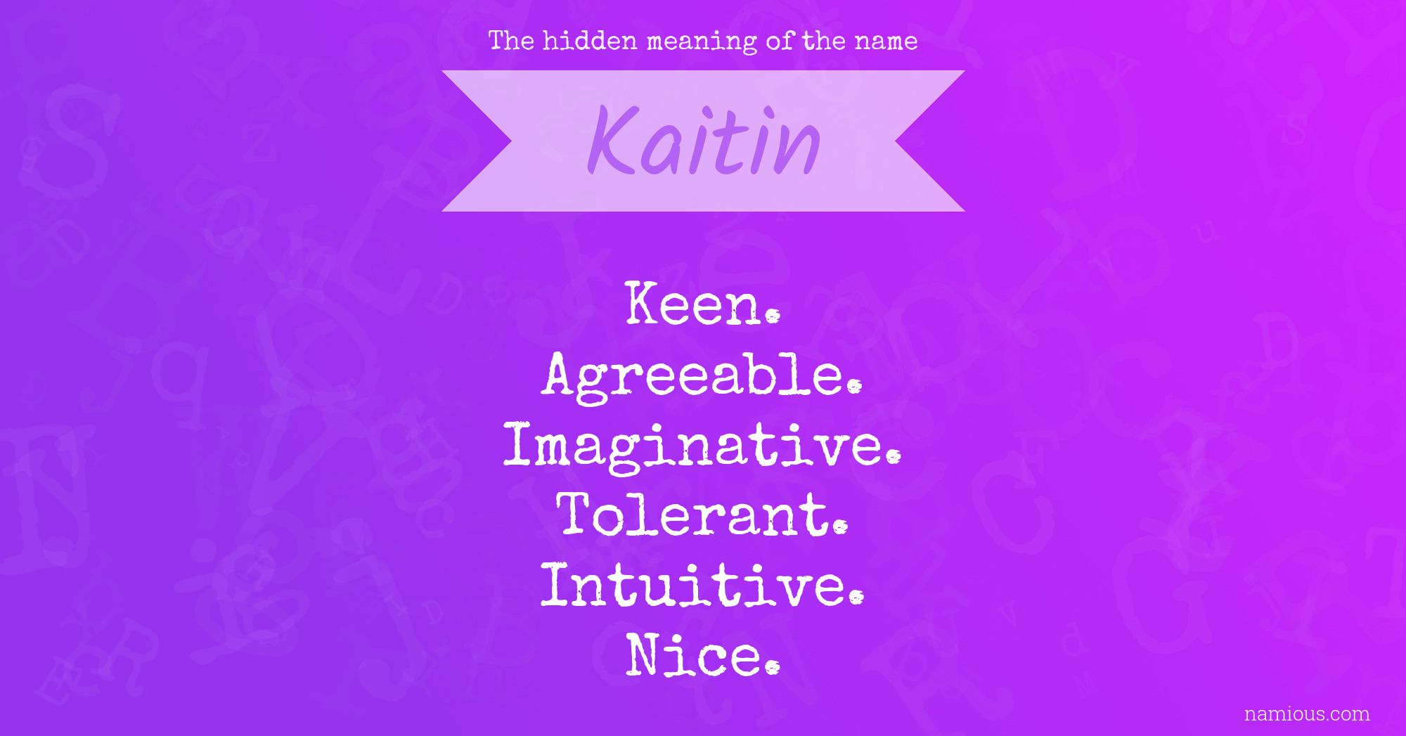 "Kaitin is a keen, agreeable, imaginative, tolerant, intuitive and nice person."