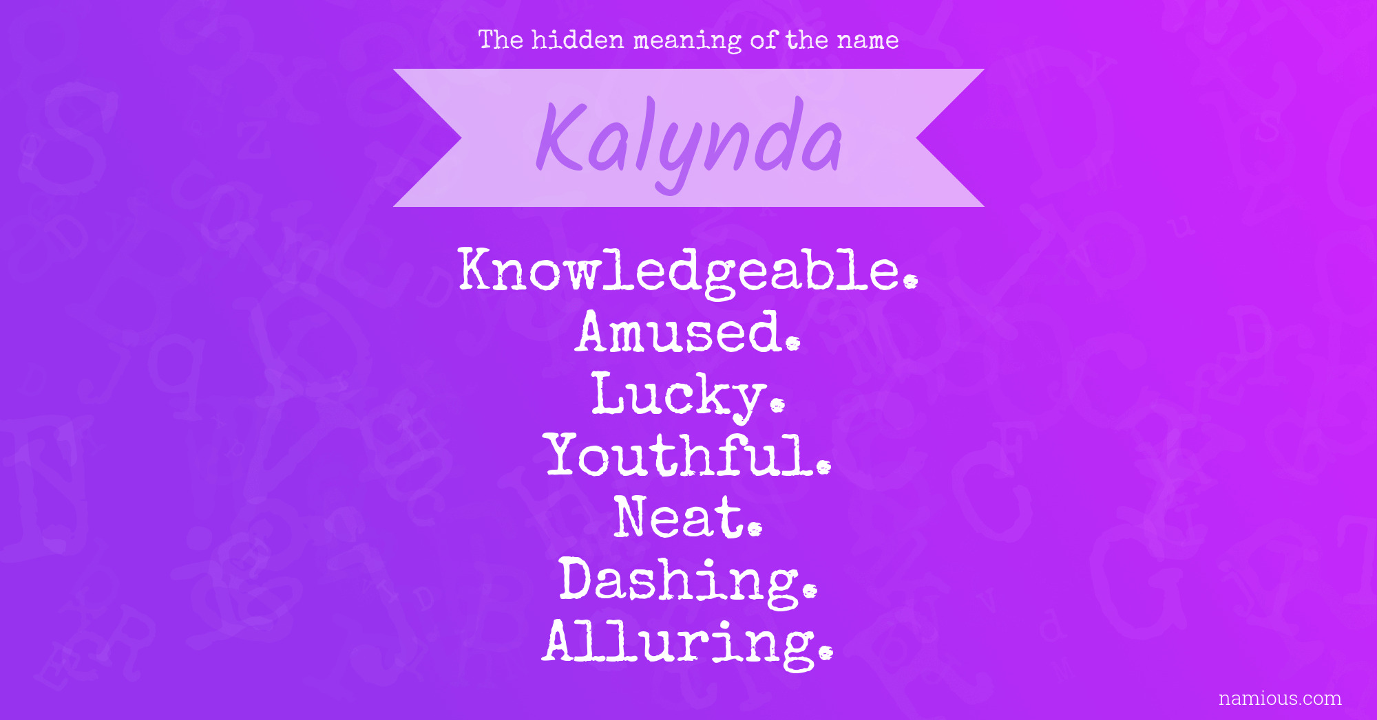 "Kalynda is a knowledgeable, amused, lucky, youthful, neat, dashing and alluring person."