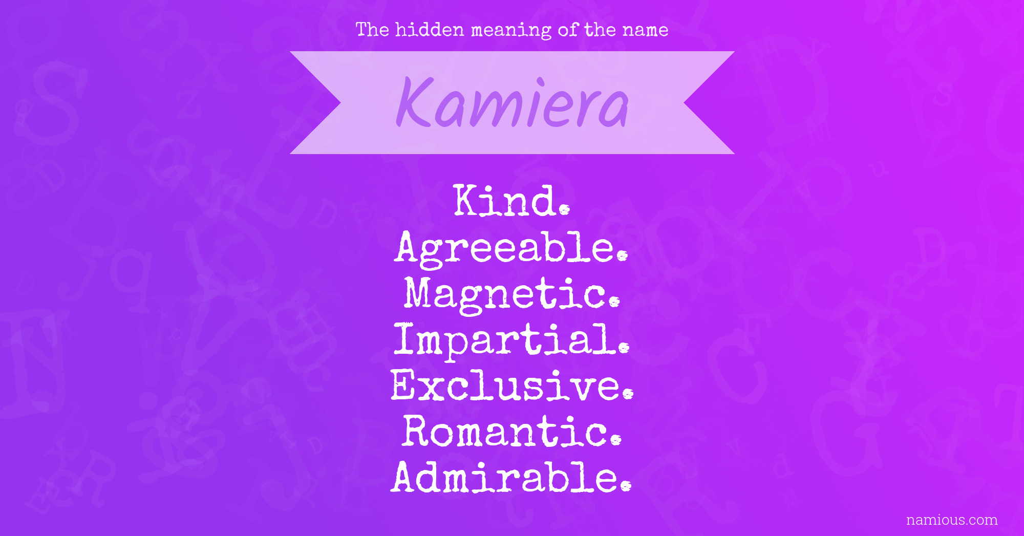 "Kamiera is a kind, agreeable, magnetic, impartial, exclusive, romantic and admirable person."