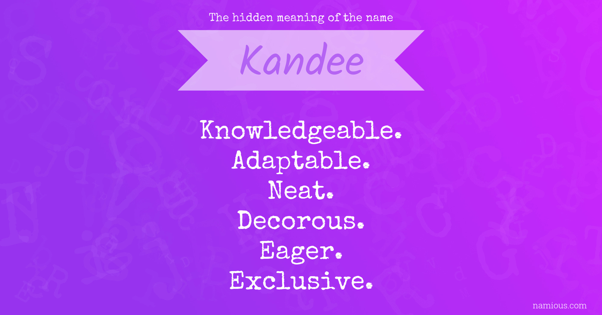 "Kandee is a knowledgeable, adaptable, neat, decorous, eager and exclusive person."