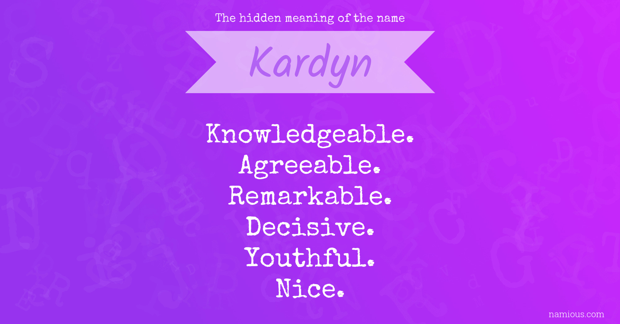 "Kardyn is a knowledgeable, agreeable, remarkable, decisive, youthful and nice person."