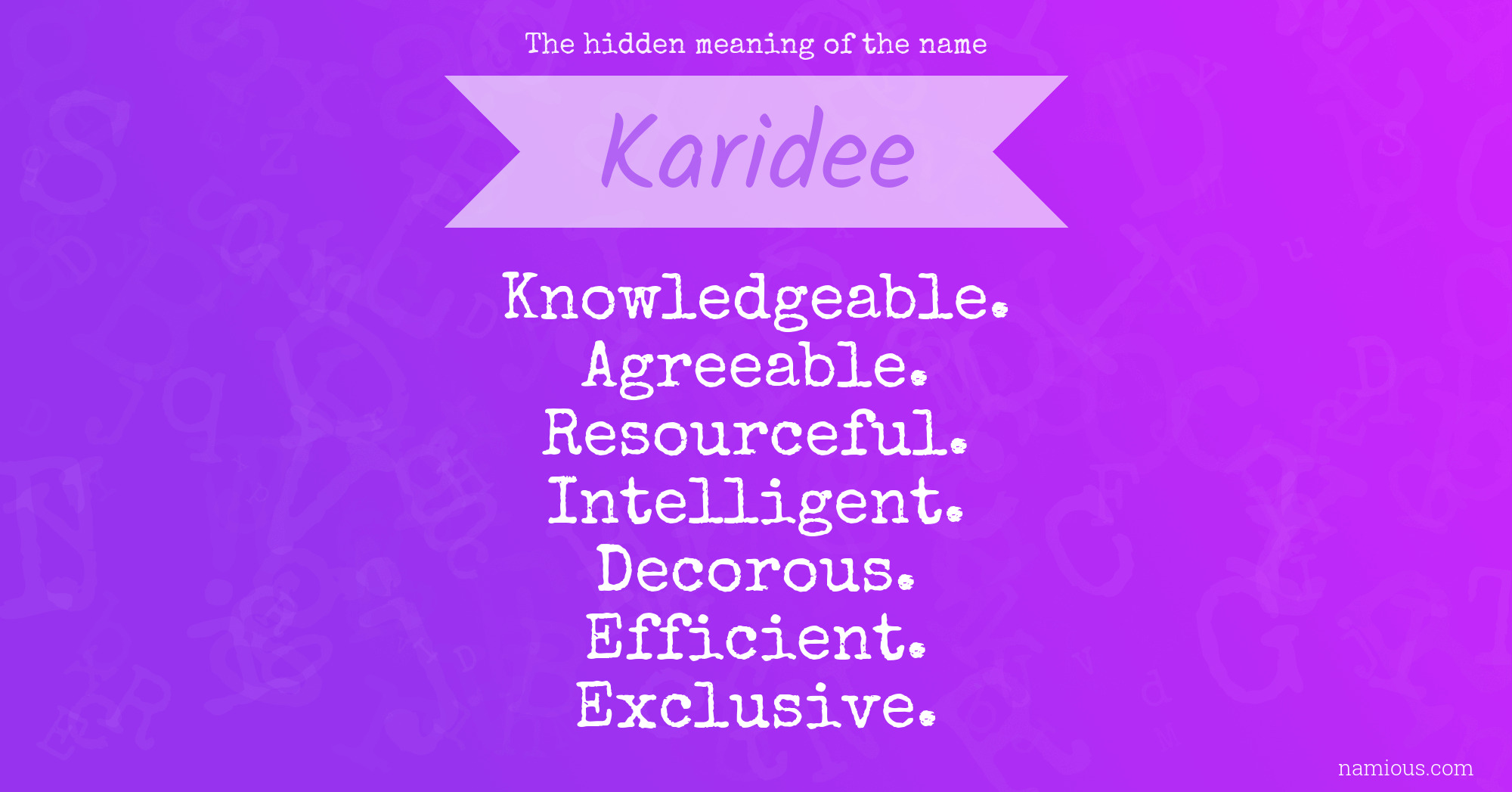 "Karidee is a knowledgeable, agreeable, resourceful, intelligent, decorous, efficient and exclusive person."