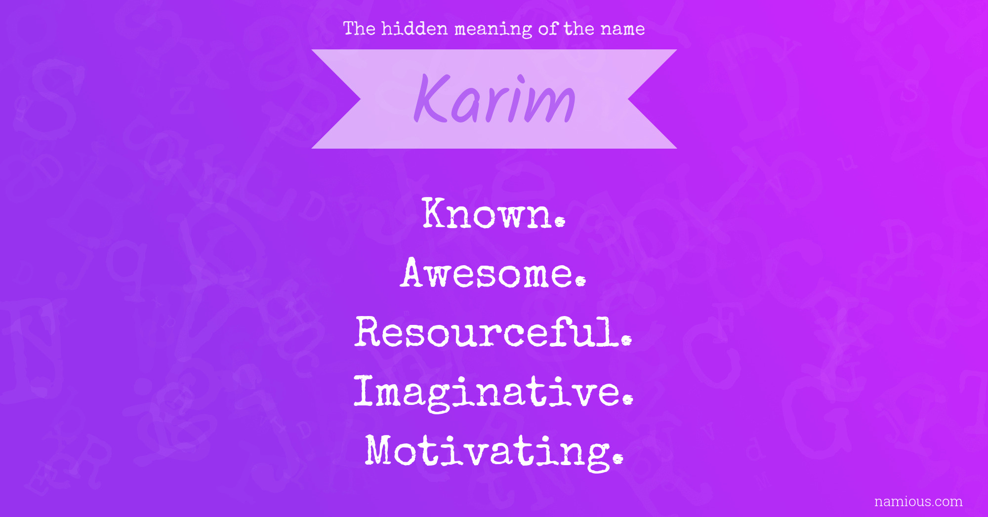 "Karim is a known, awesome, resourceful, imaginative and motivating person."