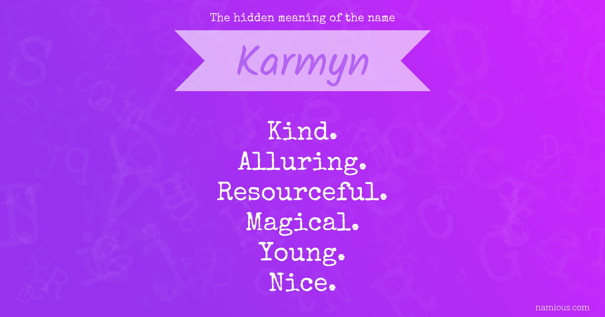 "Karmyn is a kind, alluring, resourceful, magical, young and nice person."