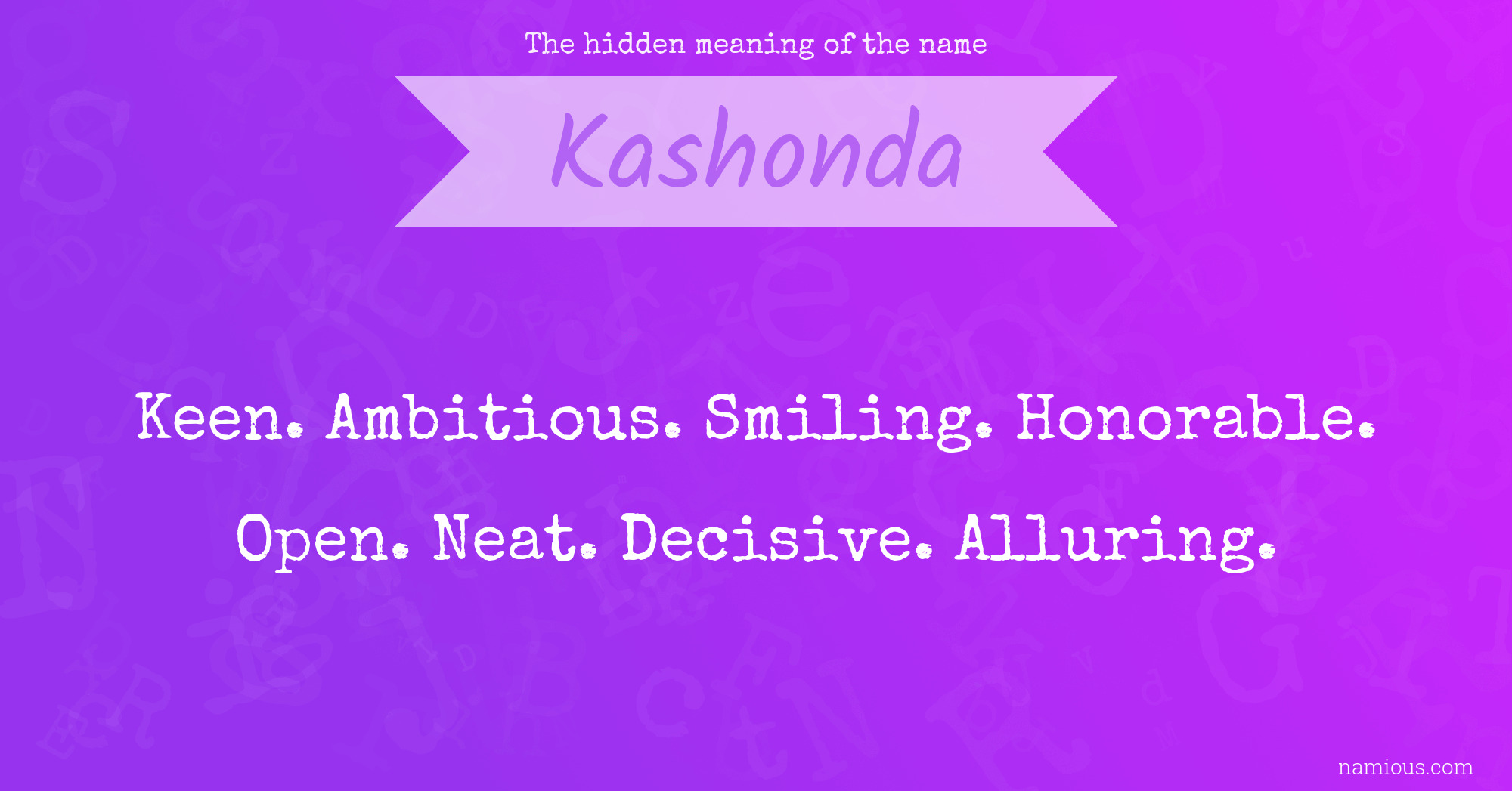 "Kashonda is a keen, ambitious, smiling, honorable, open, neat, decisive and alluring person."
