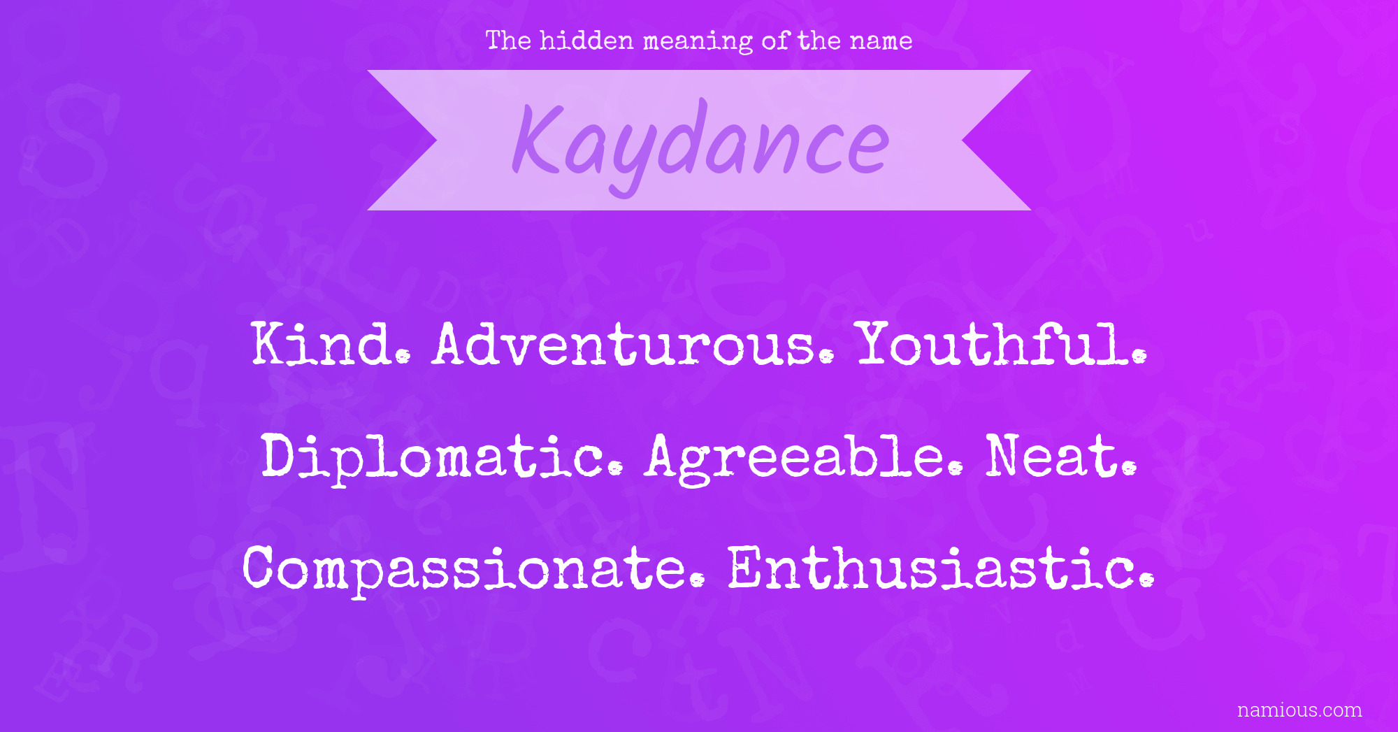 "Kaydance is a kind, adventurous, youthful, diplomatic, agreeable, neat, compassionate and enthusiastic person."
