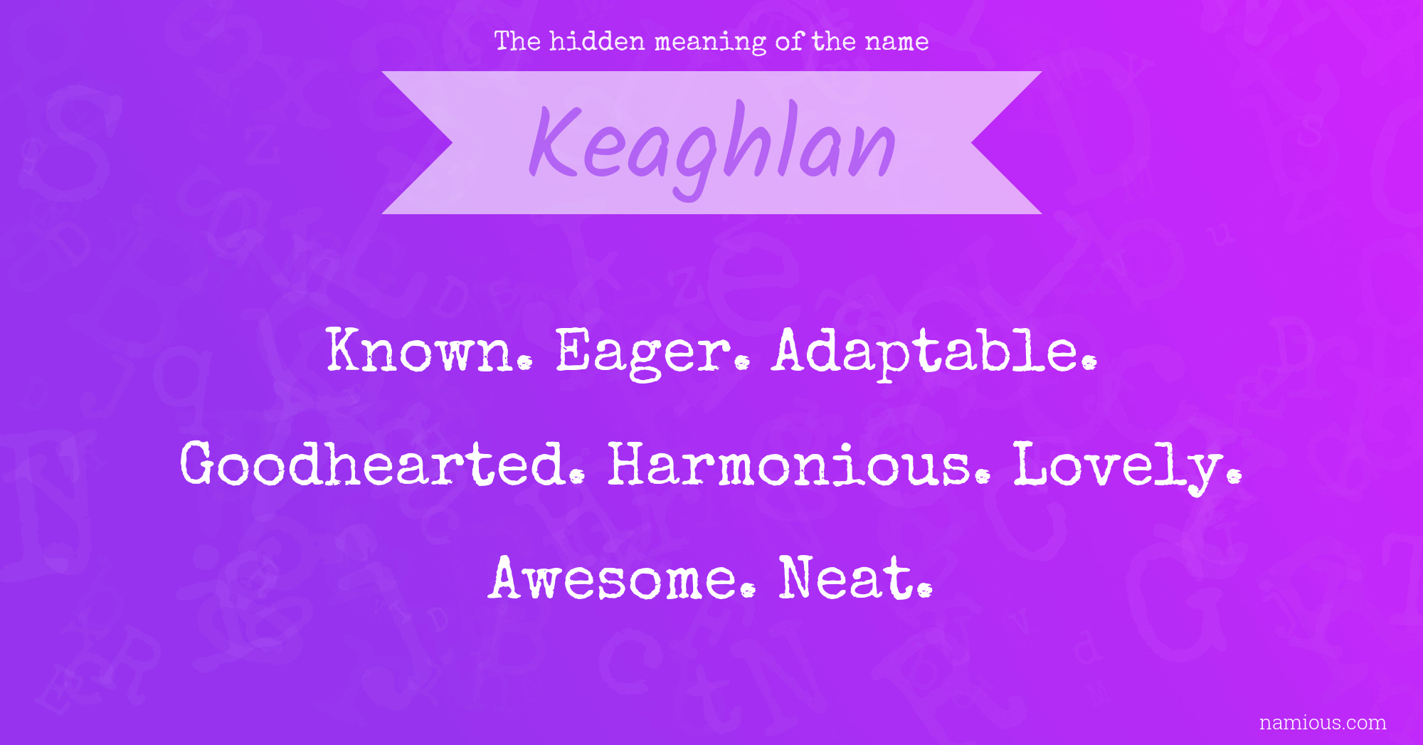 "Keaghlan is a known, eager, adaptable, goodhearted, harmonious, lovely, awesome and neat person."
