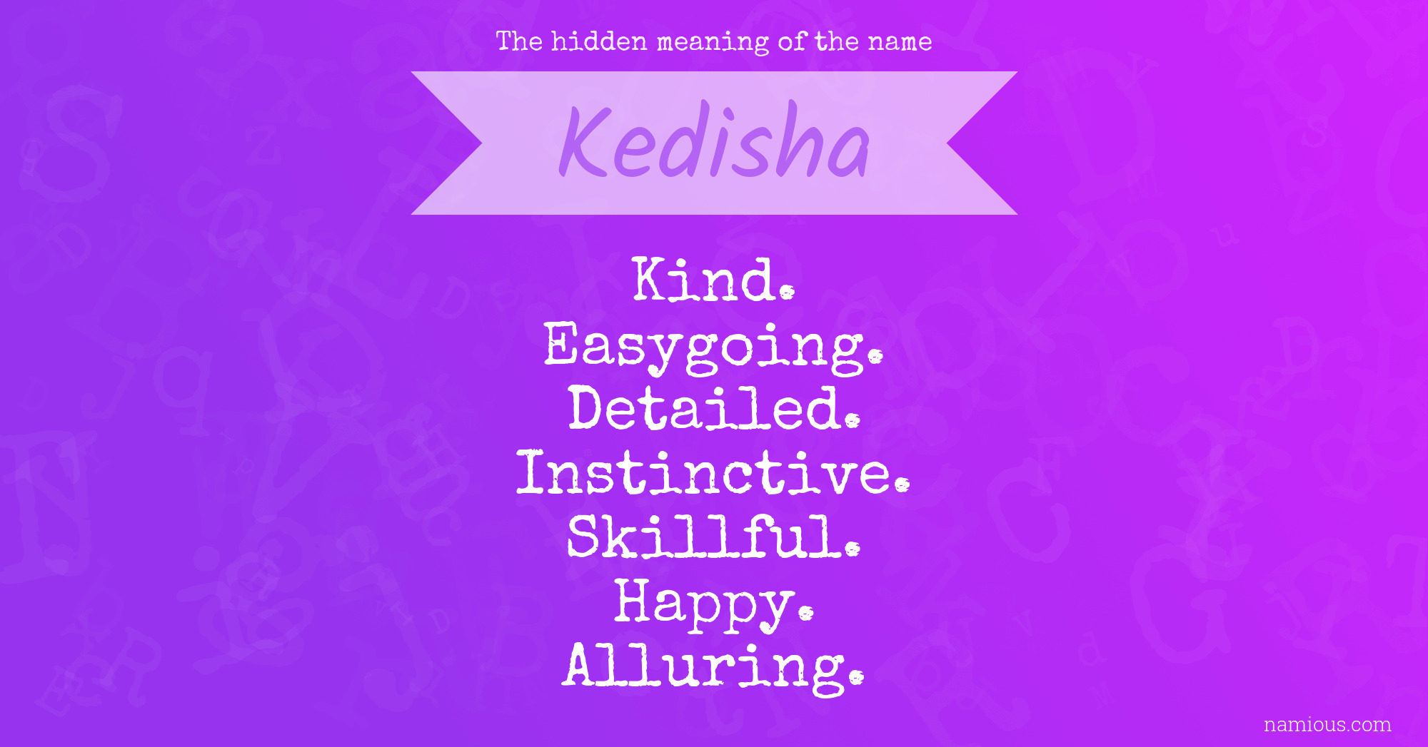 "Kedisha is a kind, easygoing, detailed, instinctive, skillful, happy and alluring person."