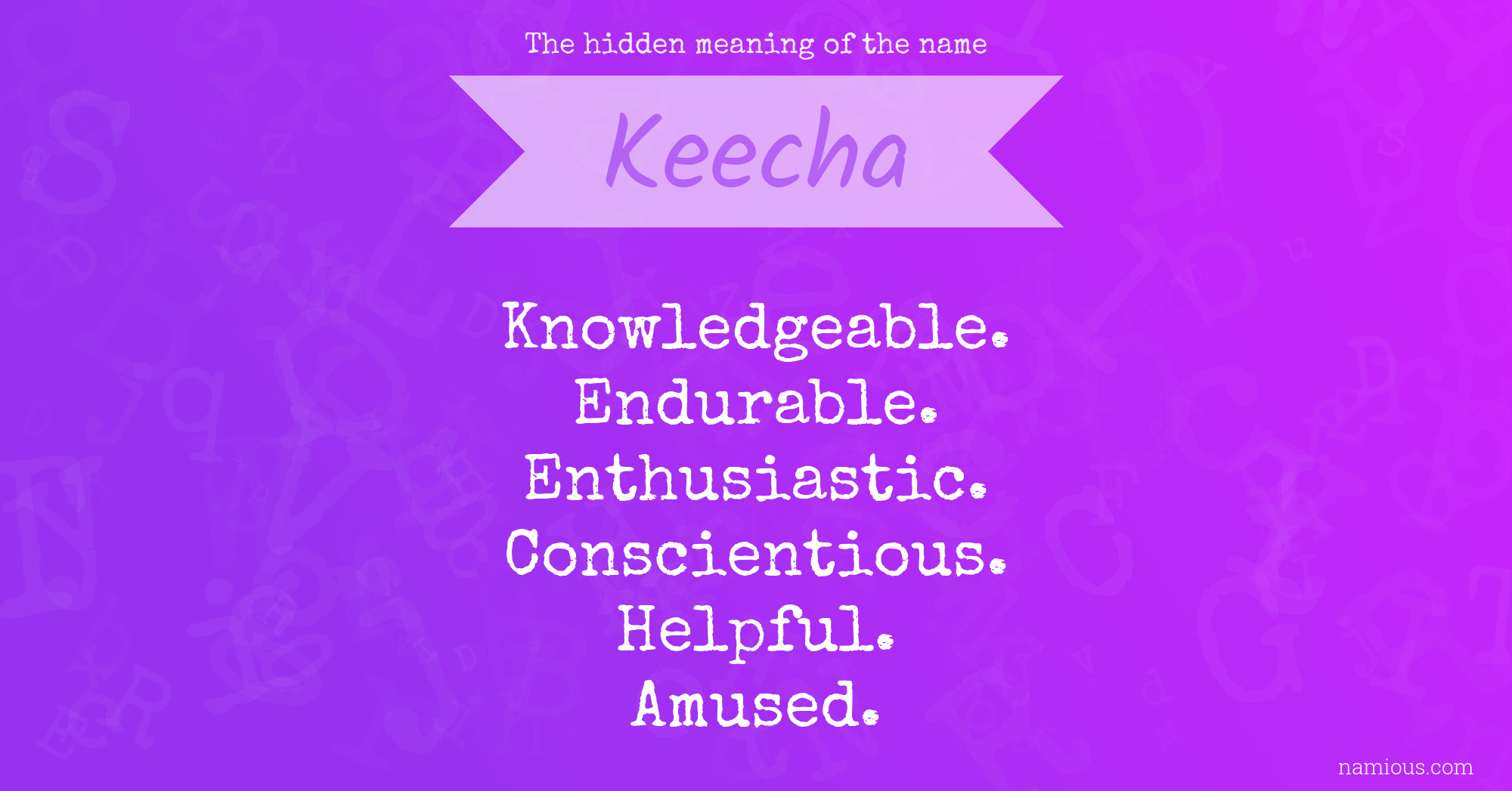 "Keecha is a knowledgeable, endurable, enthusiastic, conscientious, helpful and amused person."
