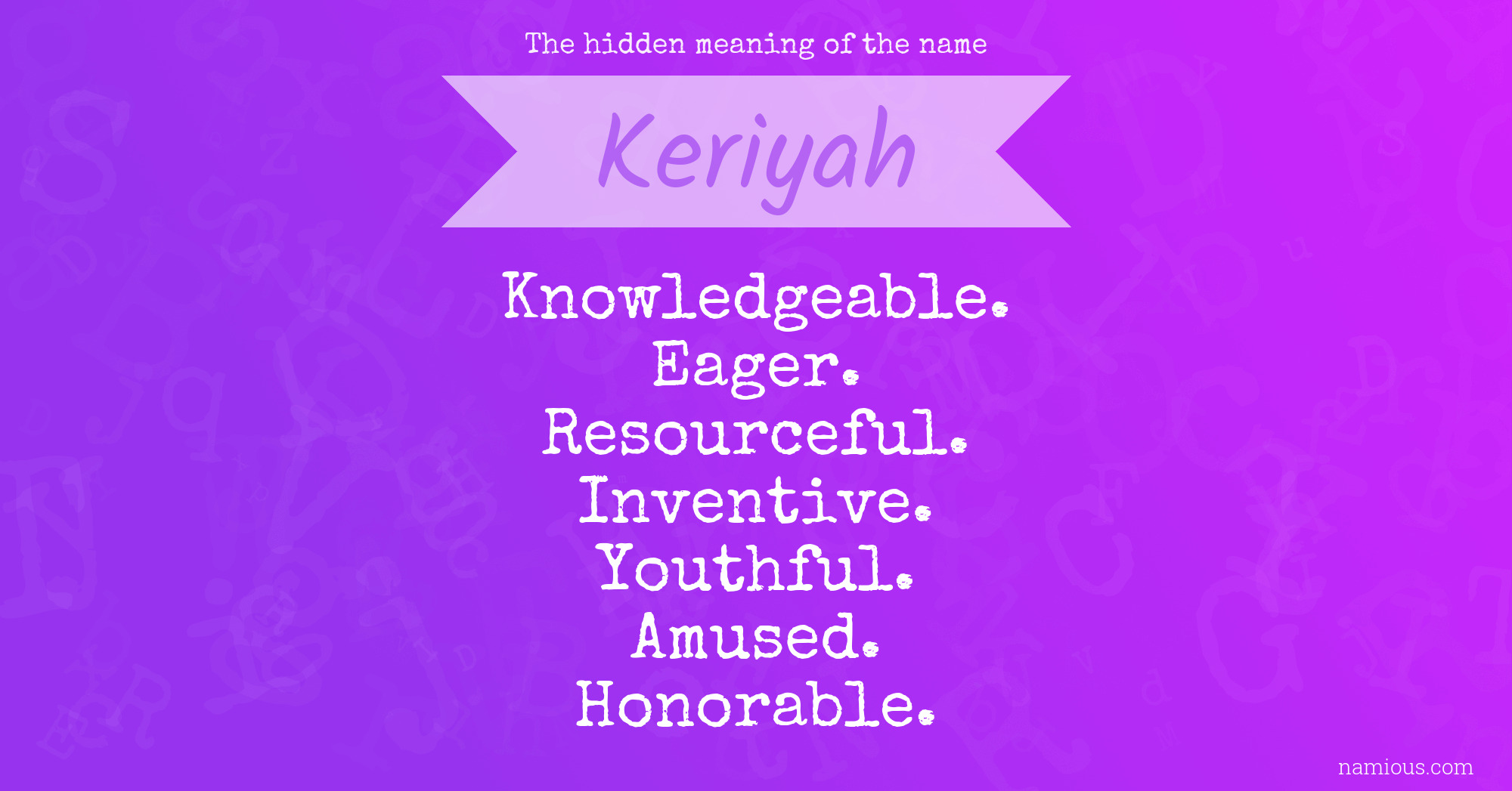 "Keriyah is a knowledgeable, eager, resourceful, inventive, youthful, amused and honorable person."