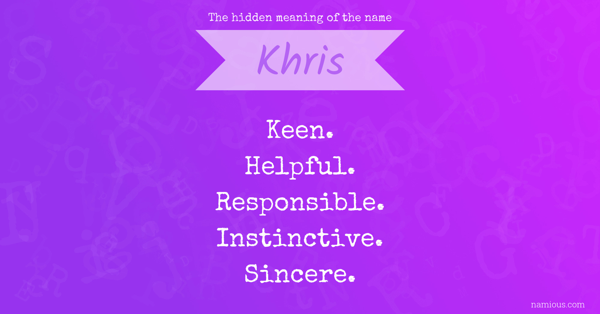 "Khris is a keen, helpful, responsible, instinctive and sincere person."