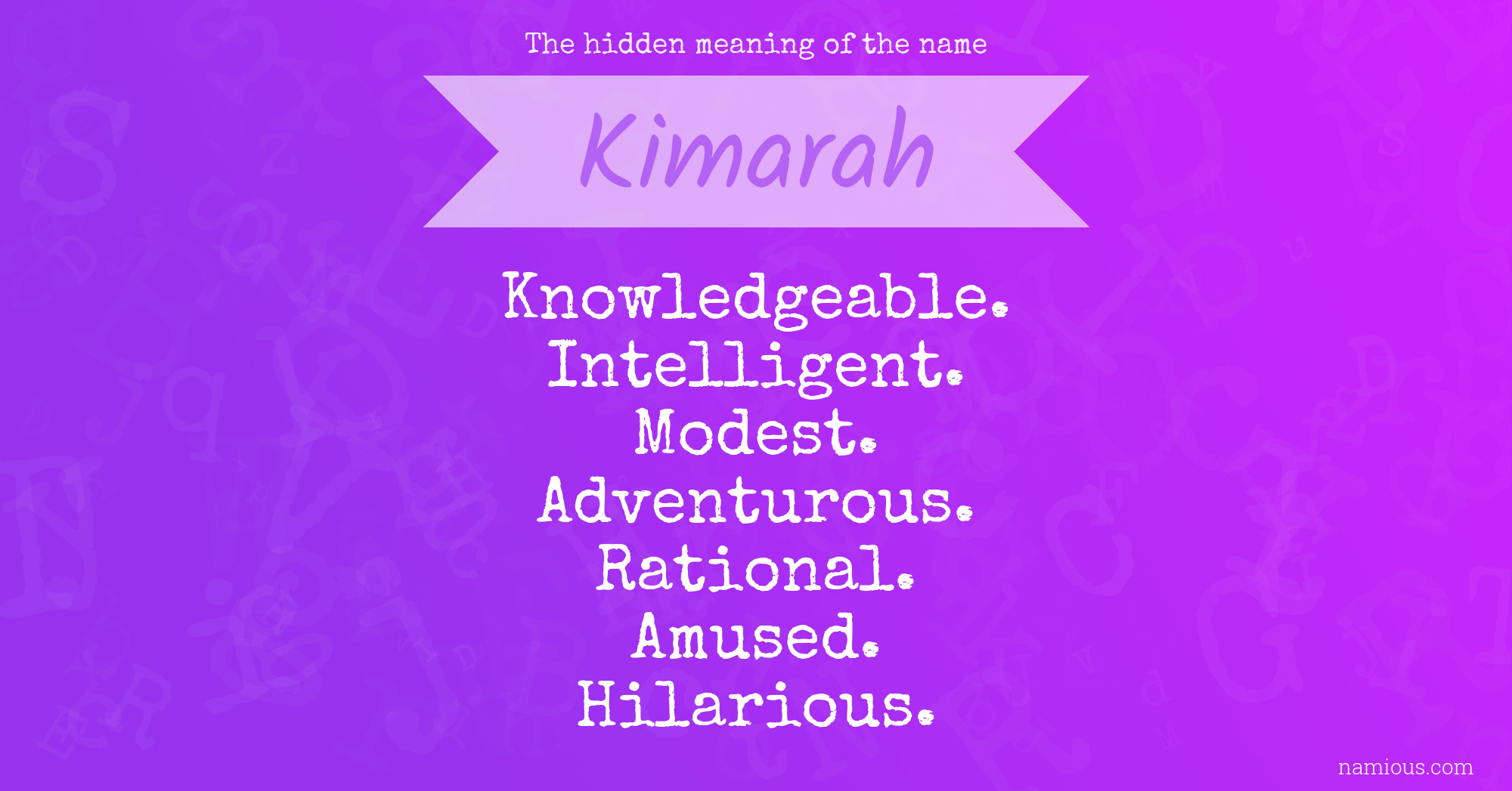 "Kimarah is a knowledgeable, intelligent, modest, adventurous, rational, amused and hilarious person."
