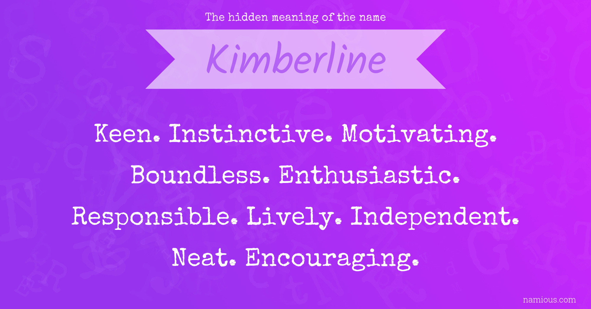 "Kimberline is a keen, instinctive, motivating, boundless, enthusiastic, responsible, lively, independent, neat and encouraging person."