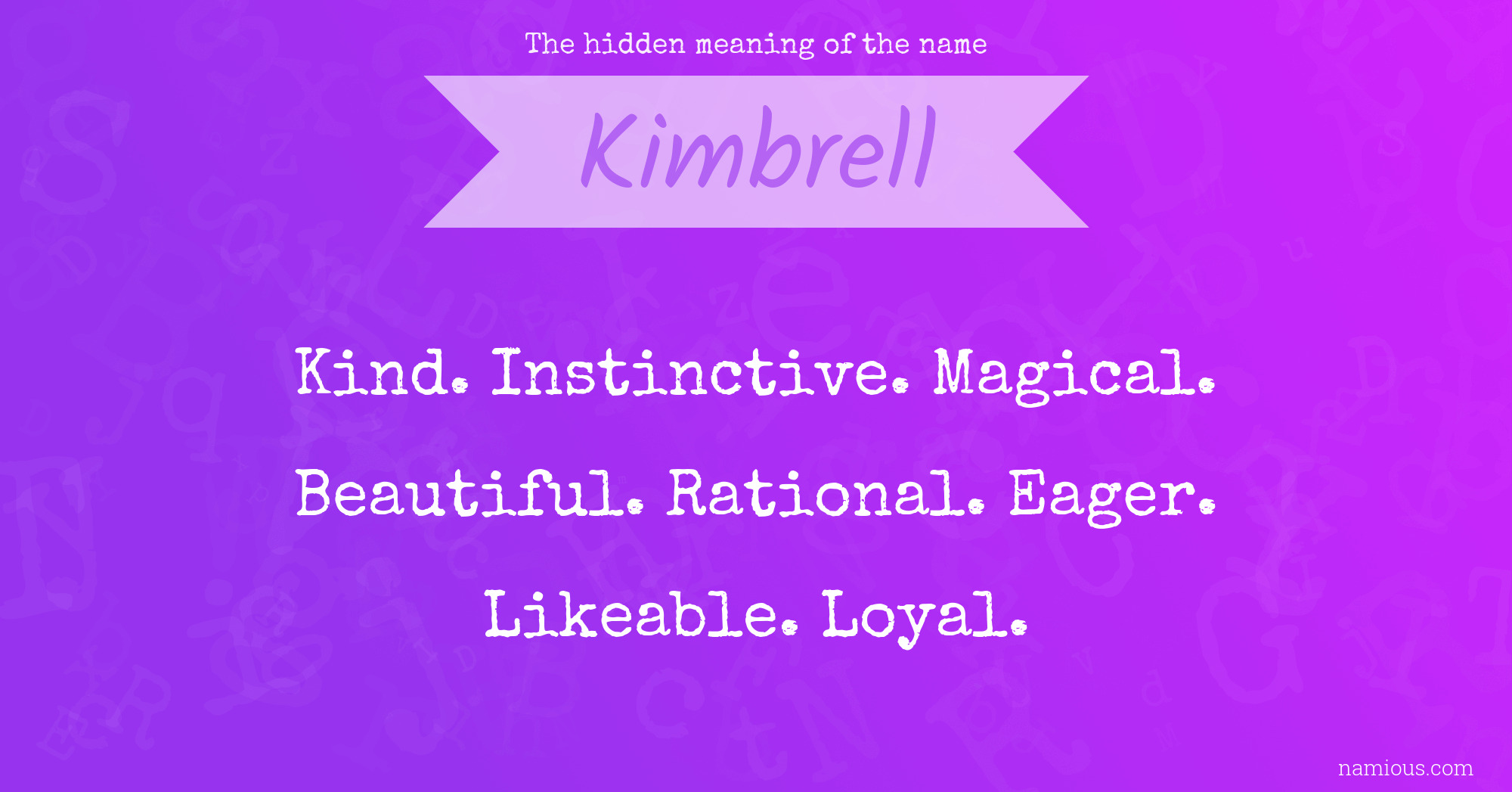 "Kimbrell is a kind, instinctive, magical, beautiful, rational, eager, likeable and loyal person."