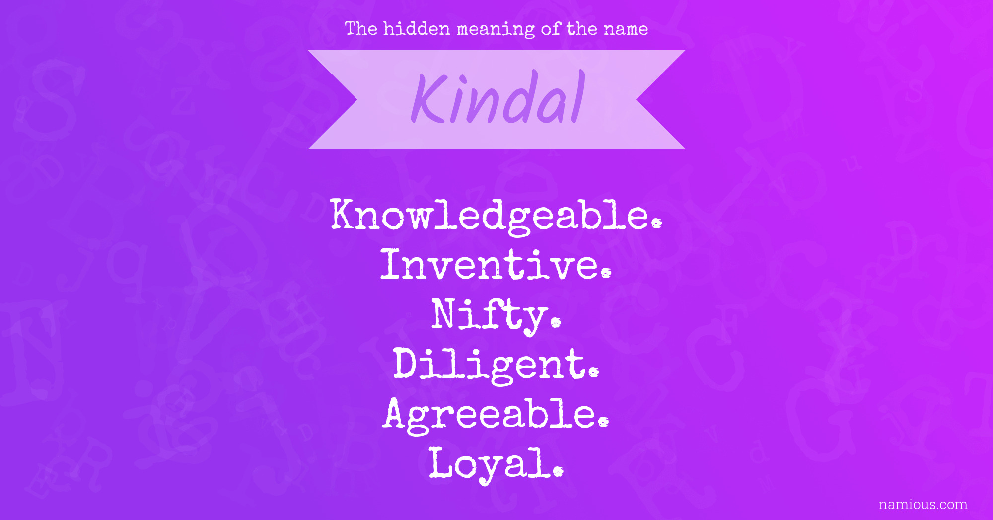 "Kindal is a knowledgeable, inventive, nifty, diligent, agreeable and loyal person."