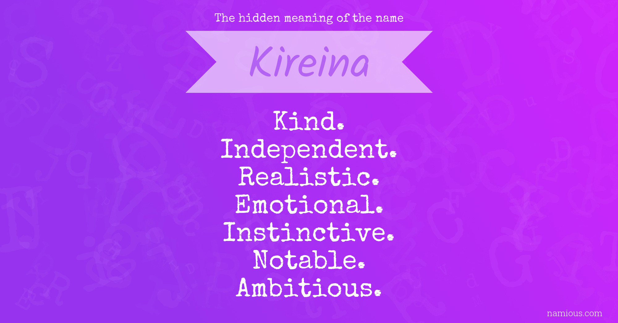 "Kireina is a kind, independent, realistic, emotional, instinctive, notable and ambitious person."