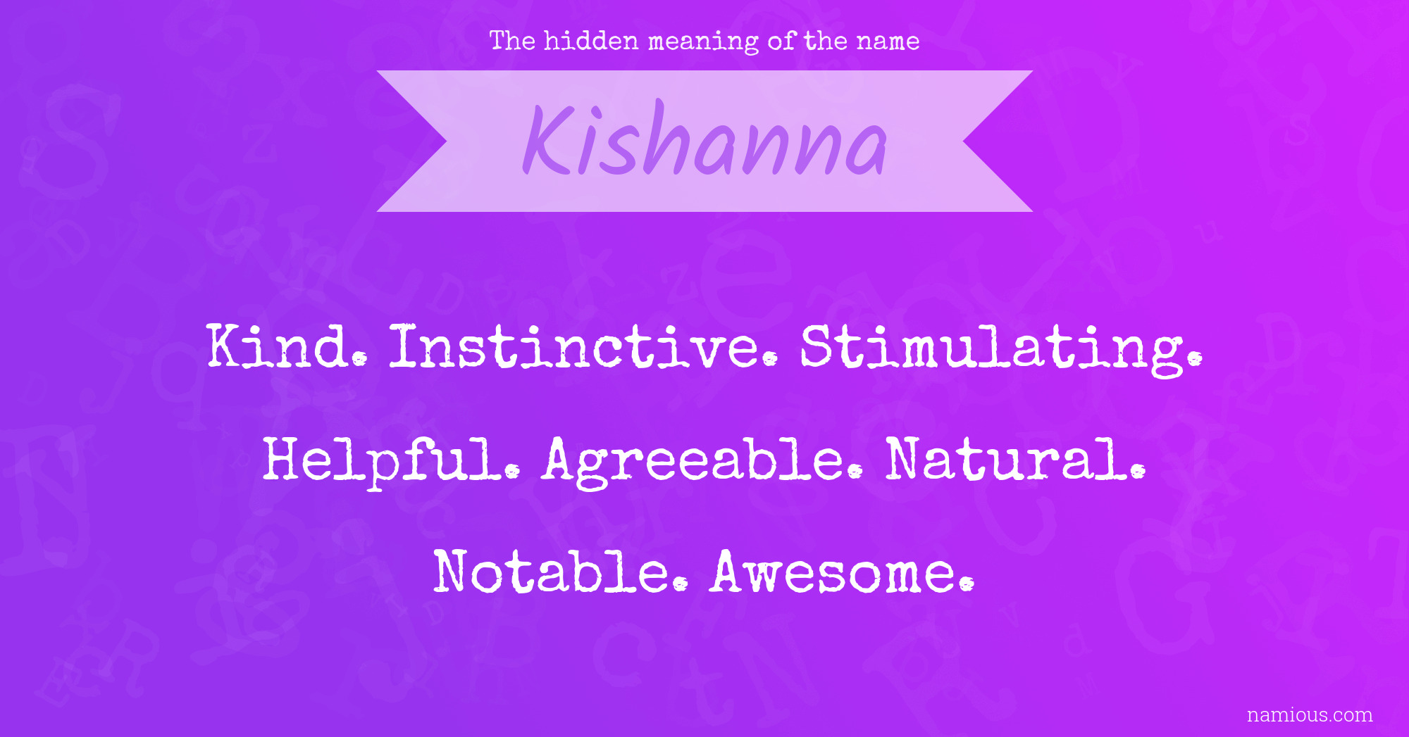"Kishanna is a kind, instinctive, stimulating, helpful, agreeable, natural, notable and awesome person."