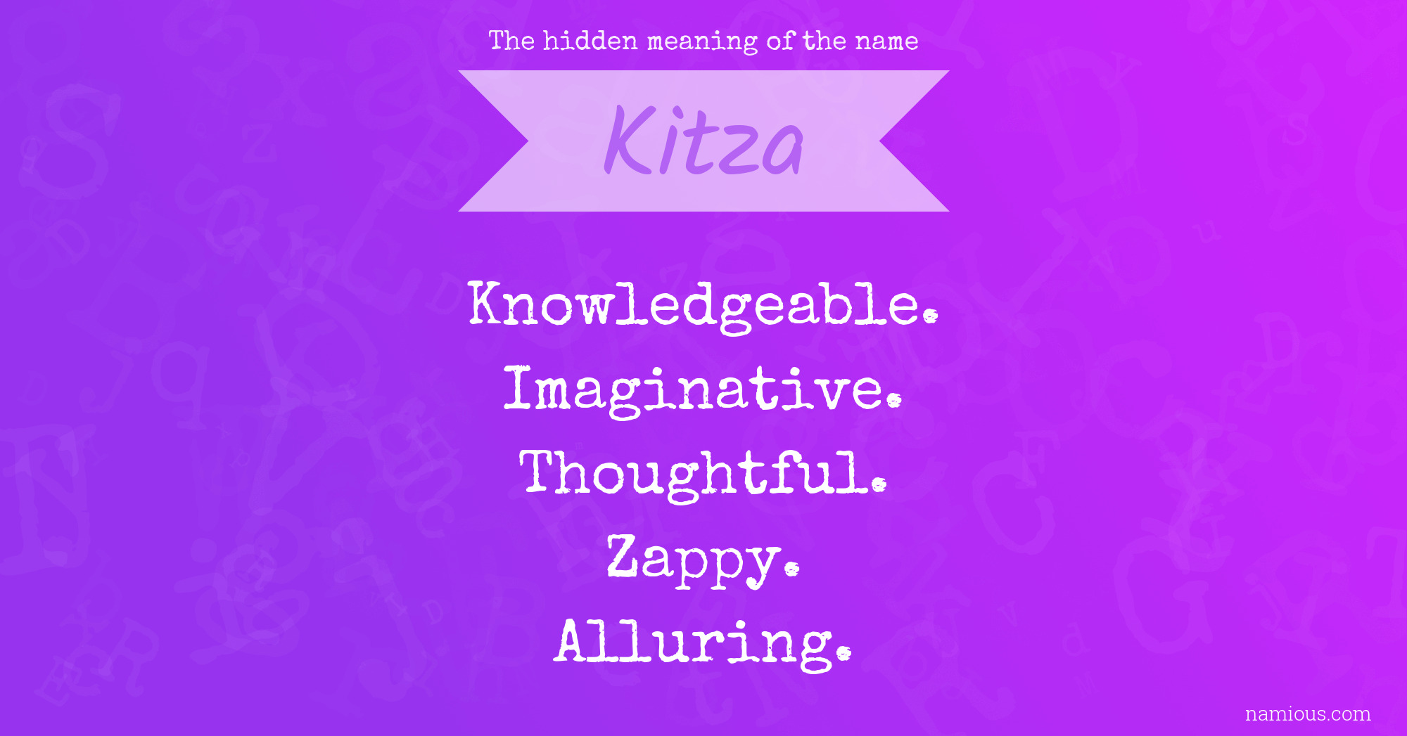 "Kitza is a knowledgeable, imaginative, thoughtful, zappy and alluring person."