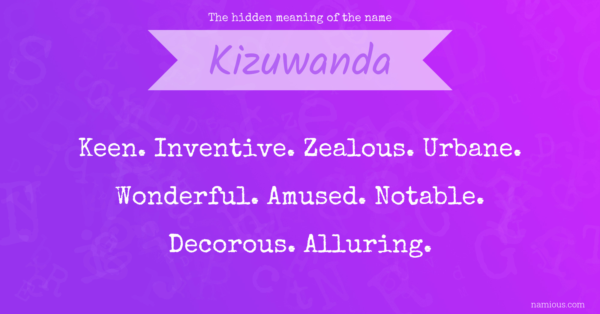 "Kizuwanda is a keen, inventive, zealous, urbane, wonderful, amused, notable, decorous and alluring person."