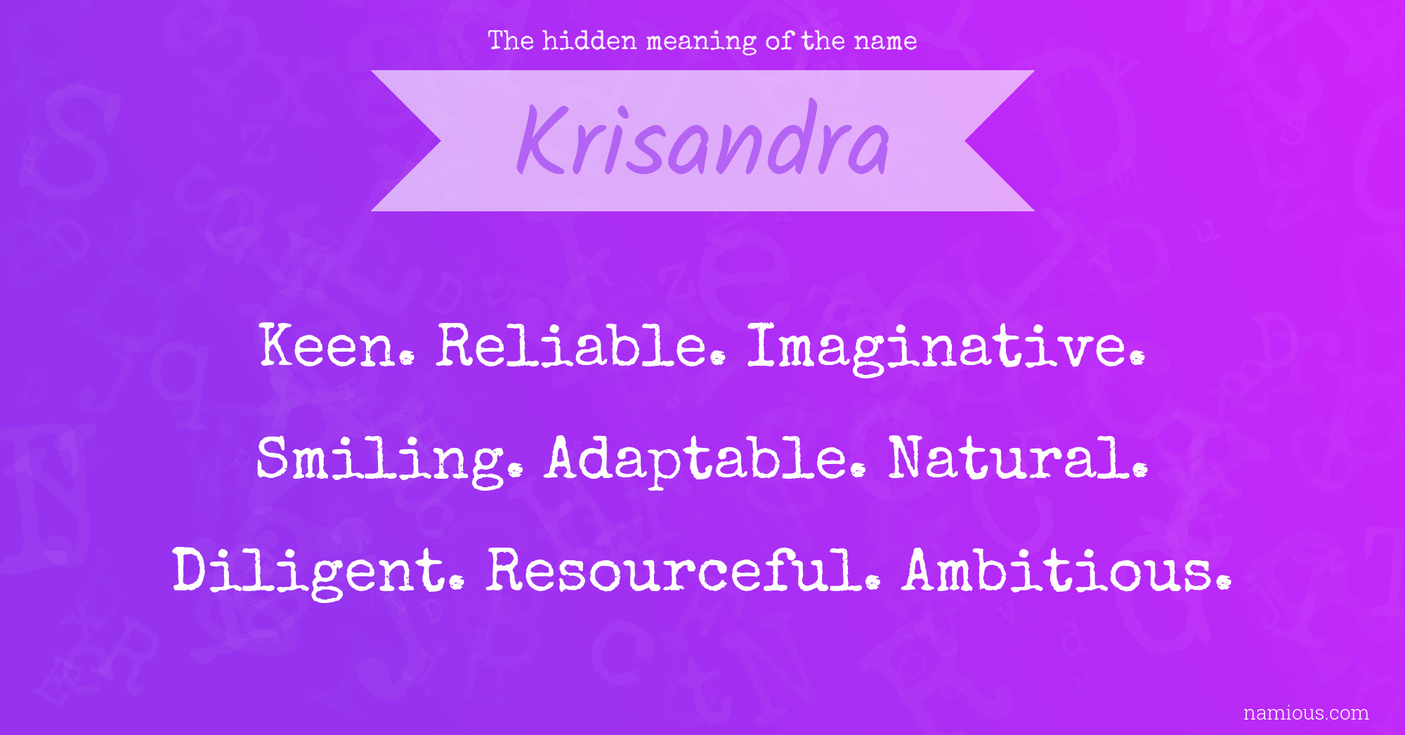 "Krisandra is a keen, reliable, imaginative, smiling, adaptable, natural, diligent, resourceful and ambitious person."