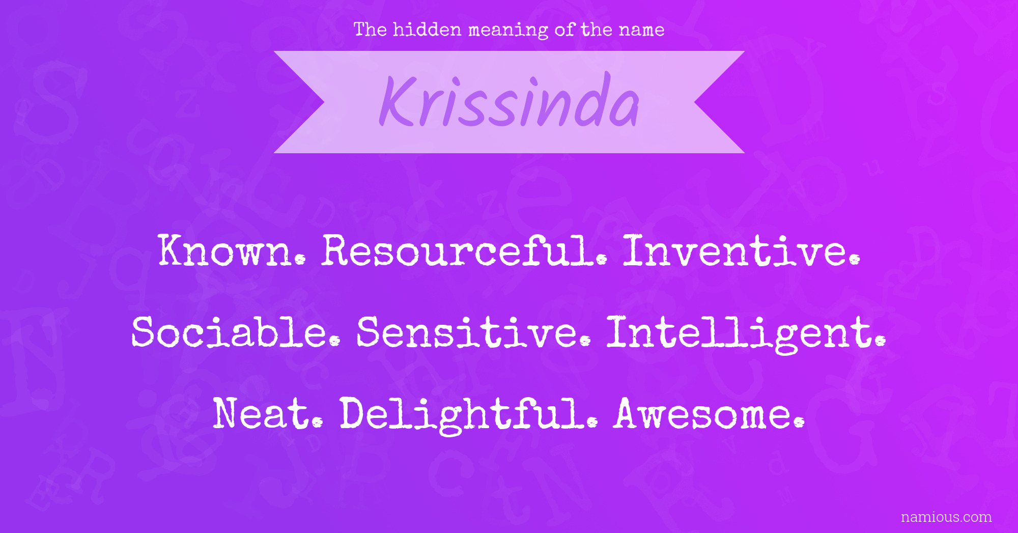 "Krissinda is a known, resourceful, inventive, sociable, sensitive, intelligent, neat, delightful and awesome person."