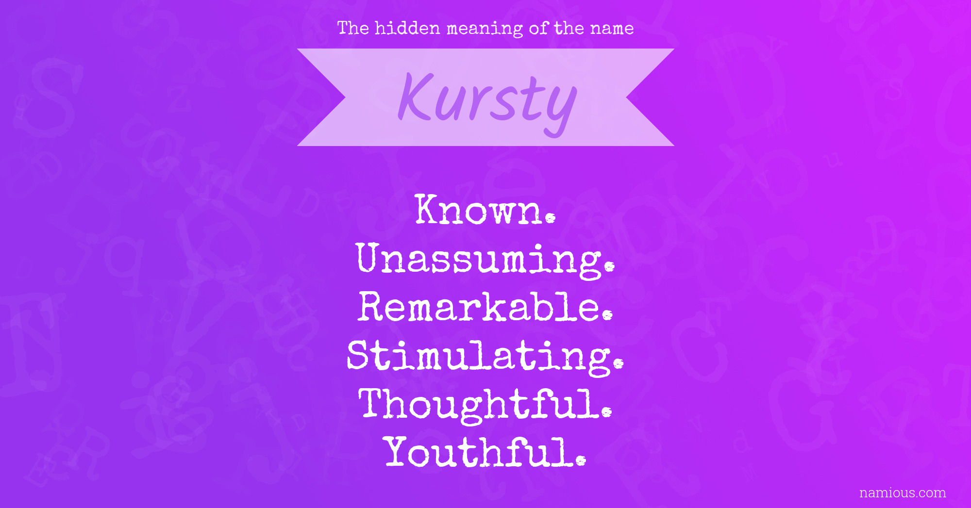 "Kursty is a known, unassuming, remarkable, stimulating, thoughtful and youthful person."