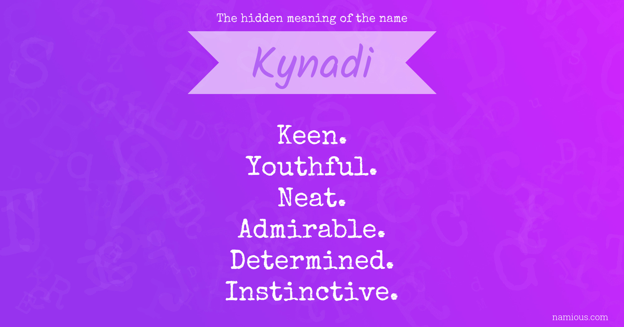 "Kynadi is a keen, youthful, neat, admirable, determined and instinctive person."