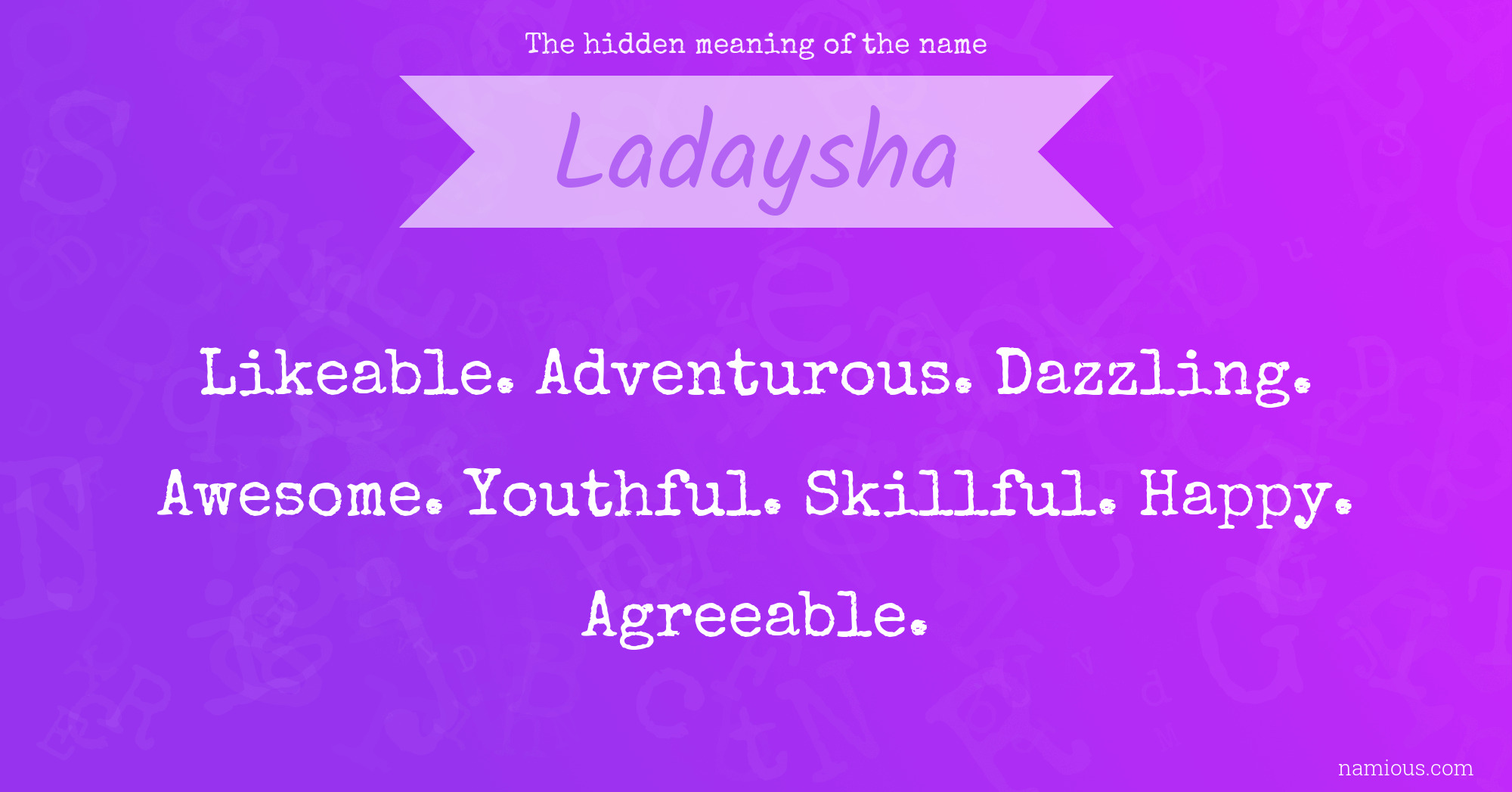 "Ladaysha is a likeable, adventurous, dazzling, awesome, youthful, skillful, happy and agreeable person."