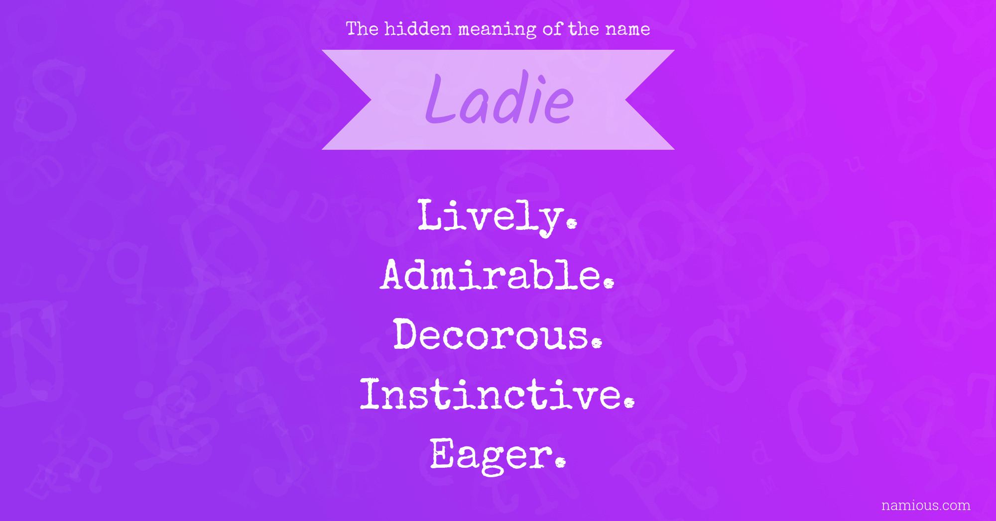 "Ladie is a lively, admirable, decorous, instinctive and eager person."