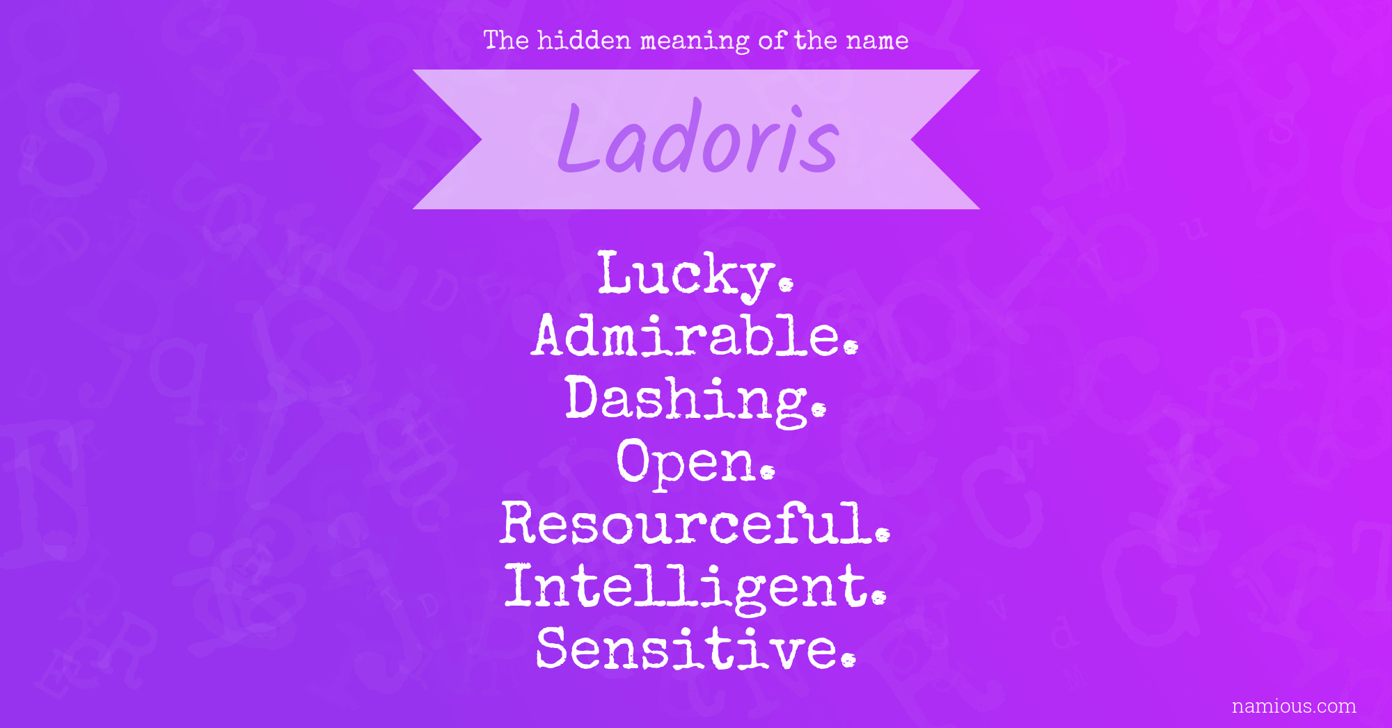 "Ladoris is a lucky, admirable, dashing, open, resourceful, intelligent and sensitive person."