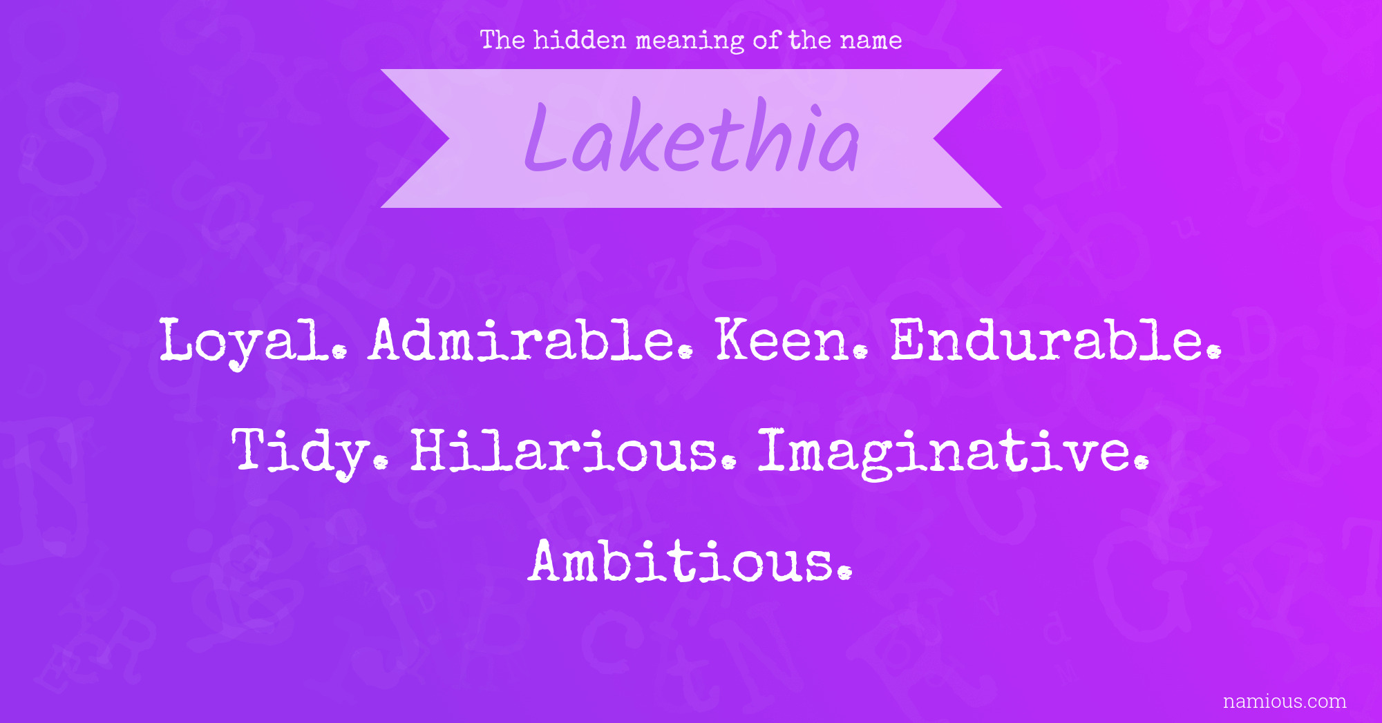 "Lakethia is a loyal, admirable, keen, endurable, tidy, hilarious, imaginative and ambitious person."