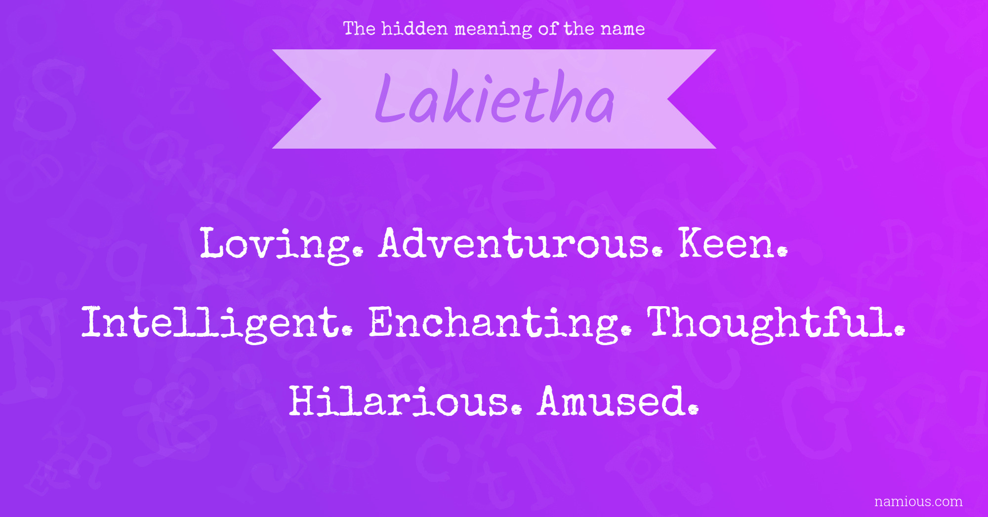 "Lakietha is a loving, adventurous, keen, intelligent, enchanting, thoughtful, hilarious and amused person."