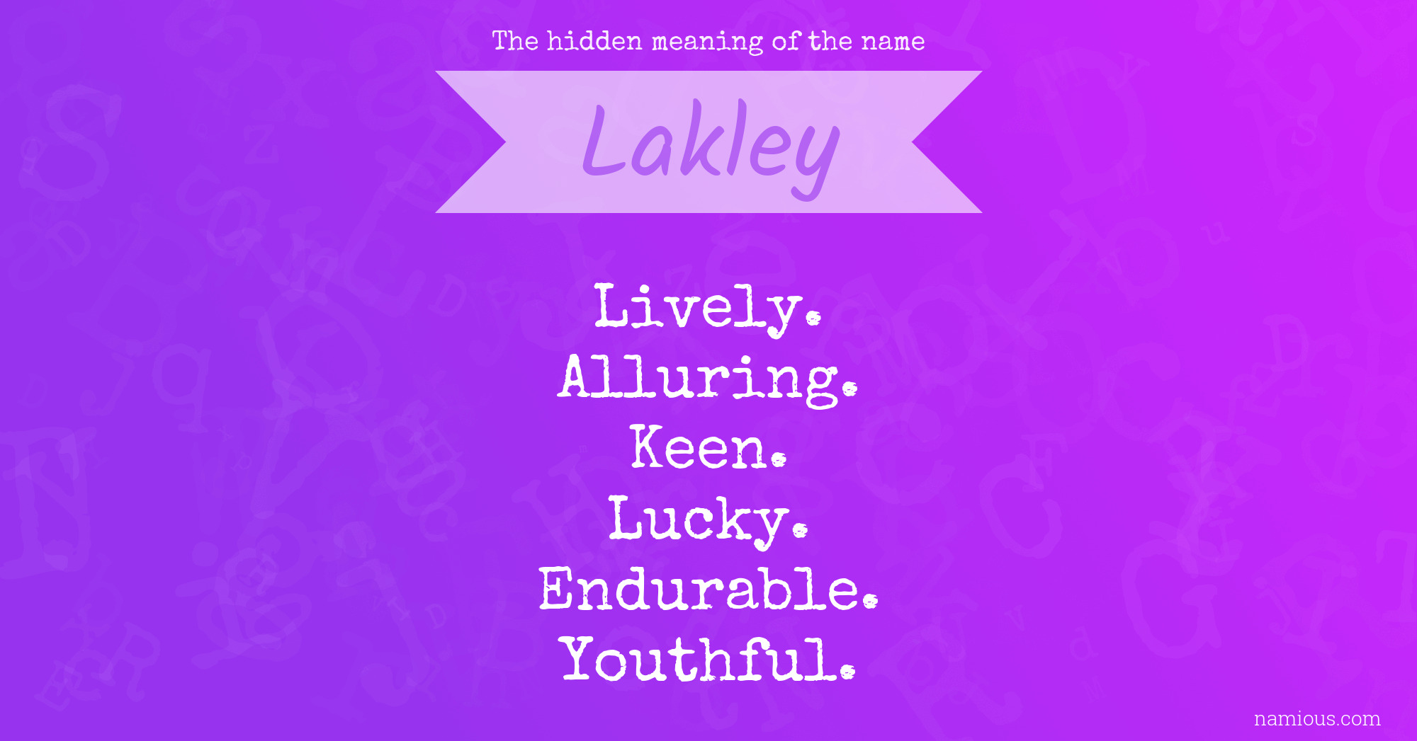 "Lakley is a lively, alluring, keen, lucky, endurable and youthful person."